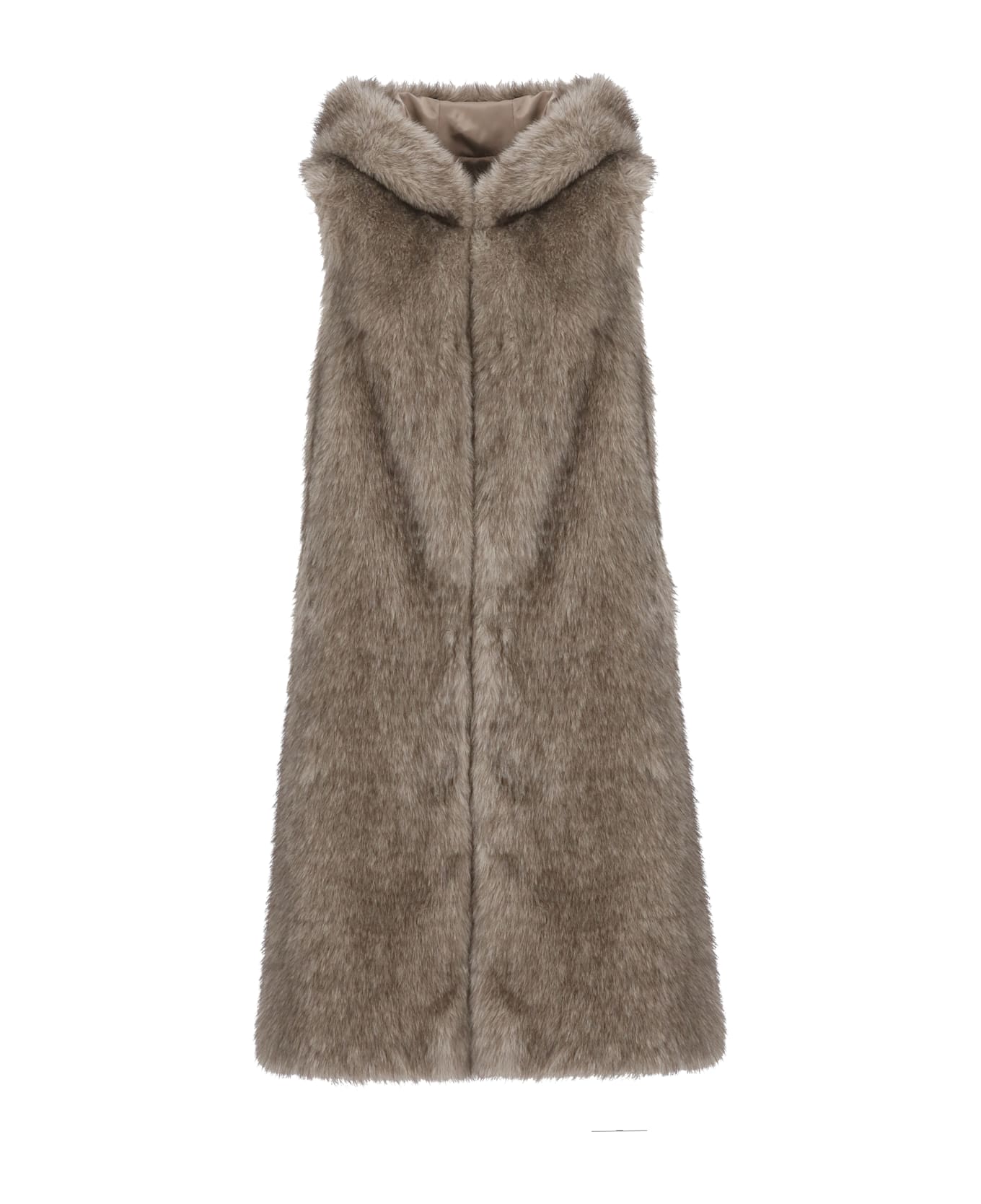 - Betta Corradi woman's grey synth fur vest - Hood - Sleeveless - Front hook fastening - Two side slit pockets