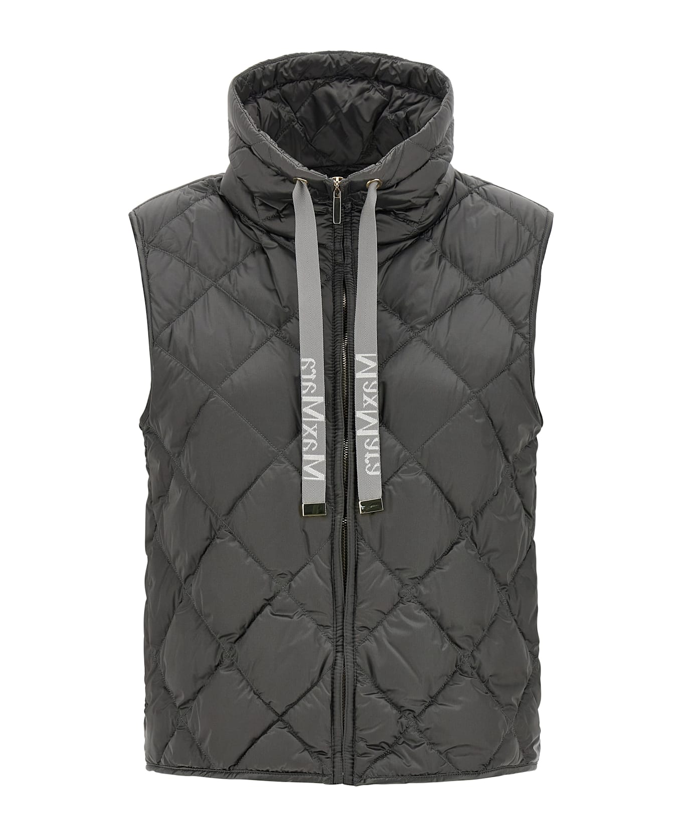 'Tregic' vest in iridescent anti-drip canvas quilted with diamonds and slightly padded with goose feathers, crater neck with drawstring and jacquard logo ribbons, front zip closure, pockets. Equipped with Cube Bag case.