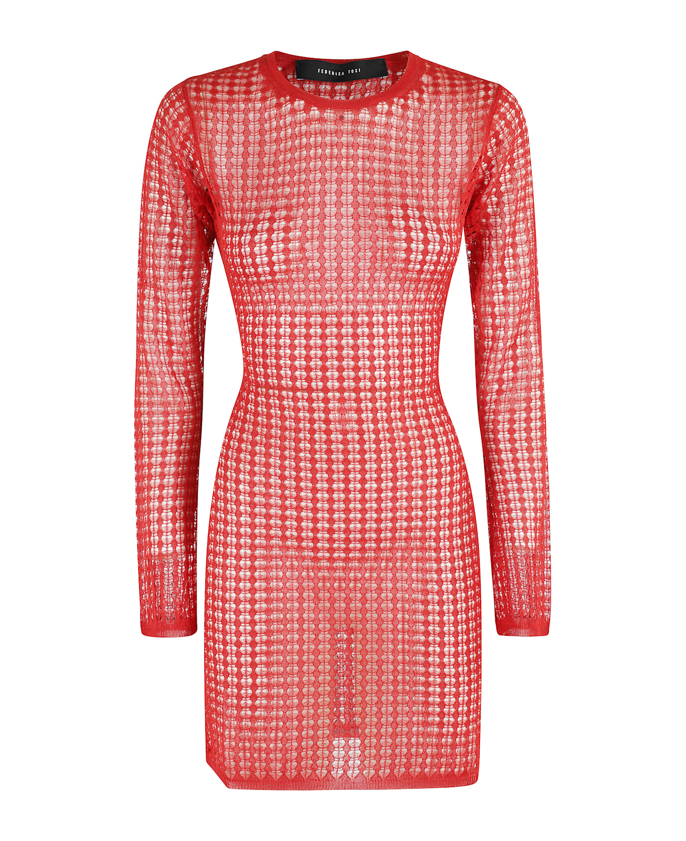 Flexage Mini Dress - Federica Tosi - Red color - Stretch knit broadcloth fabric - Crew neck - Long sleeves flared at hem - Back neckline with drawstring - Regular fit