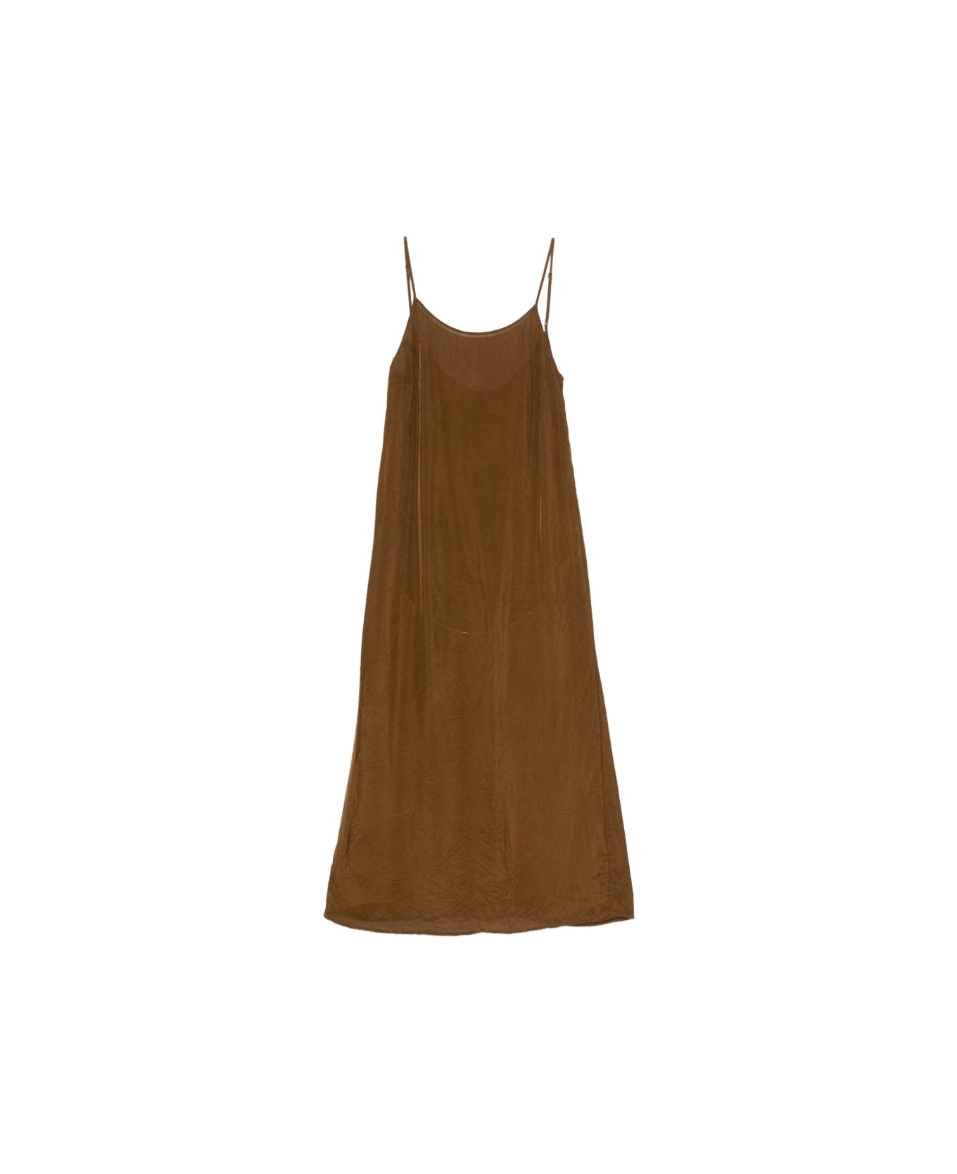 brown textured thin straps round neck sleeveless midi length