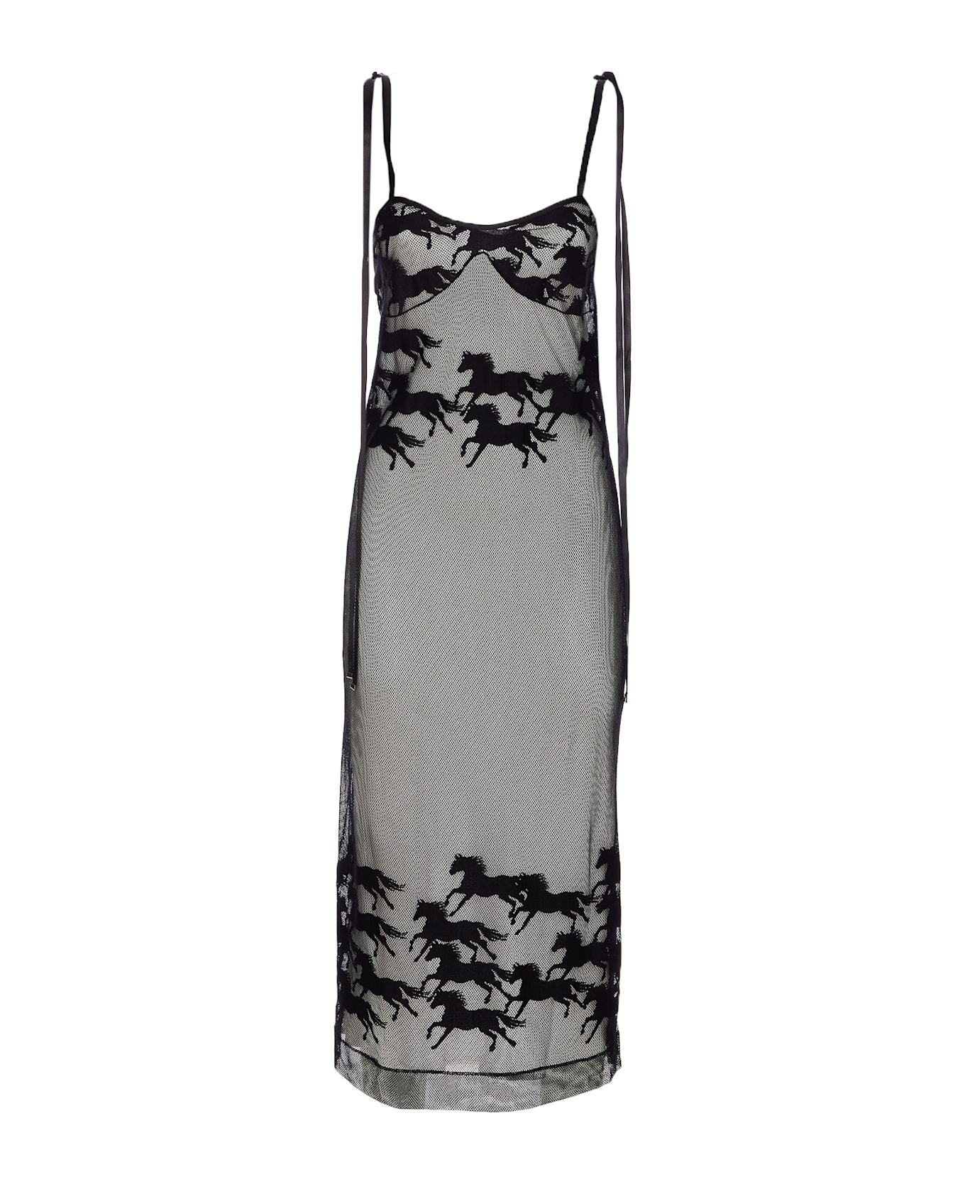 Pinko black and white Arabian dress, petticoat, midi model, horses embroidered detail, sleeveless Composition: 63% Acetate, 37% Nylon