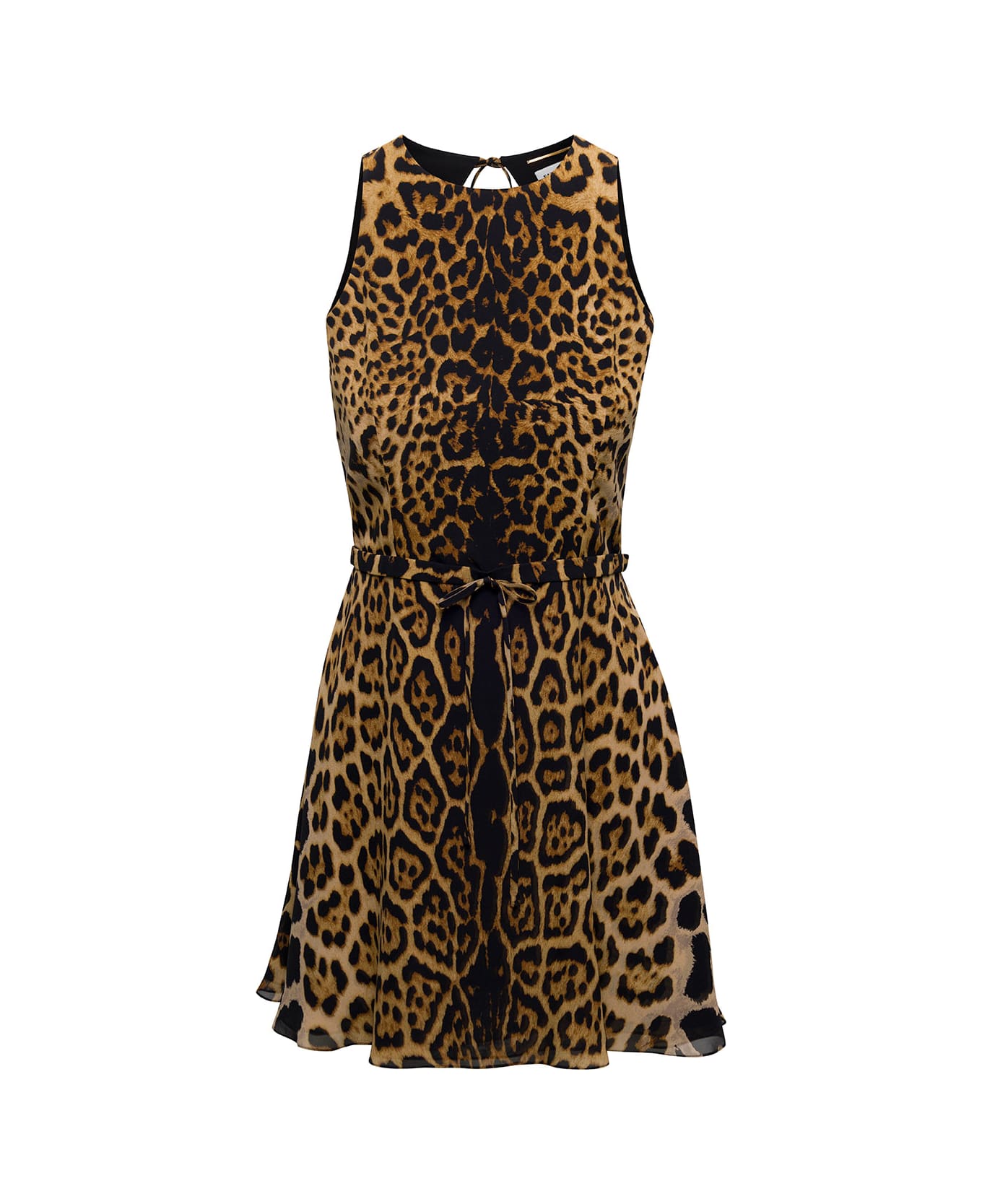MinidressCrew neck SleevelessAll-over leopard print Open back Brown Silk Regular fit Composition: 100% Silk