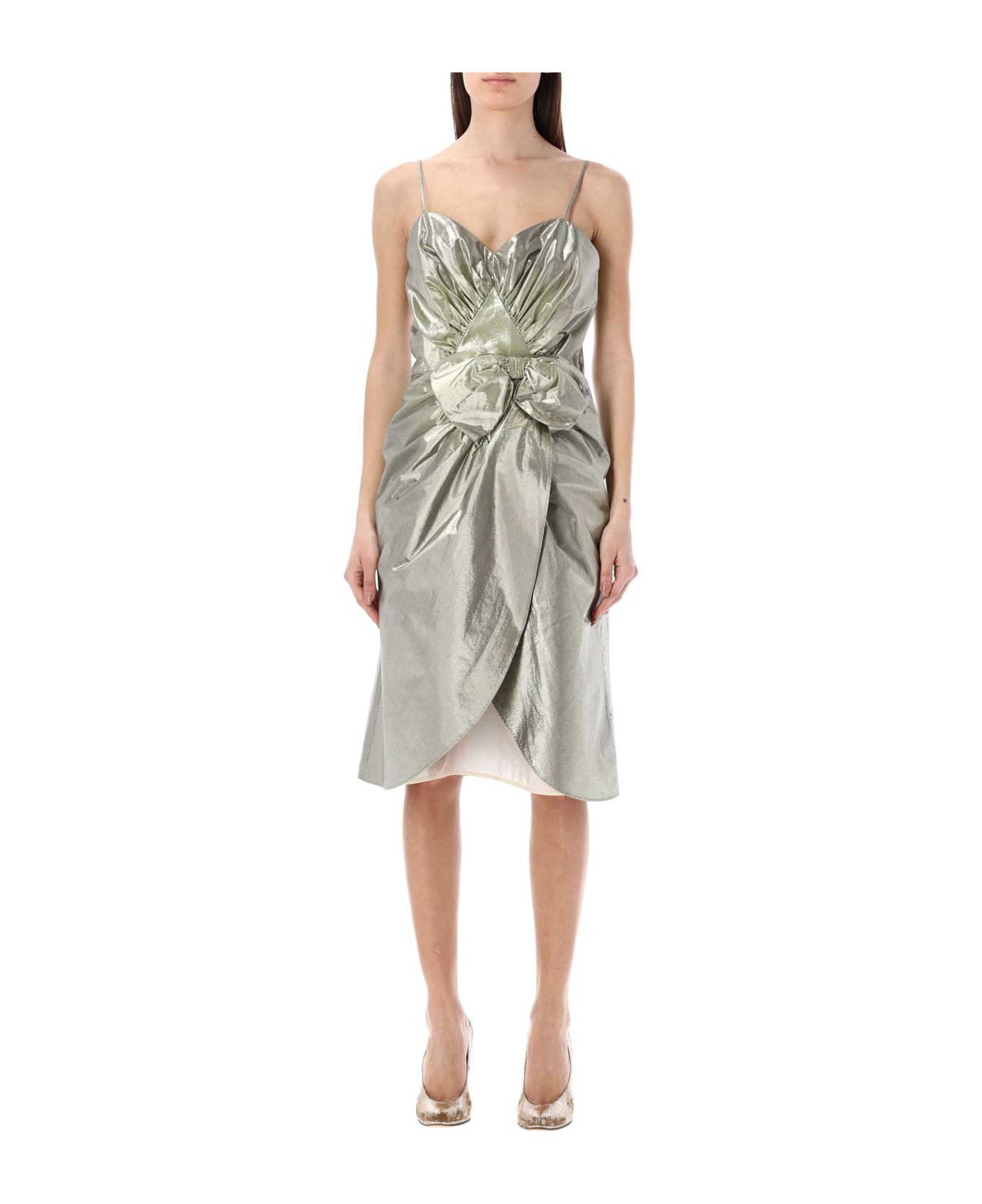Gathered Bow Midi Dress By Maison Margiela. Featuring: