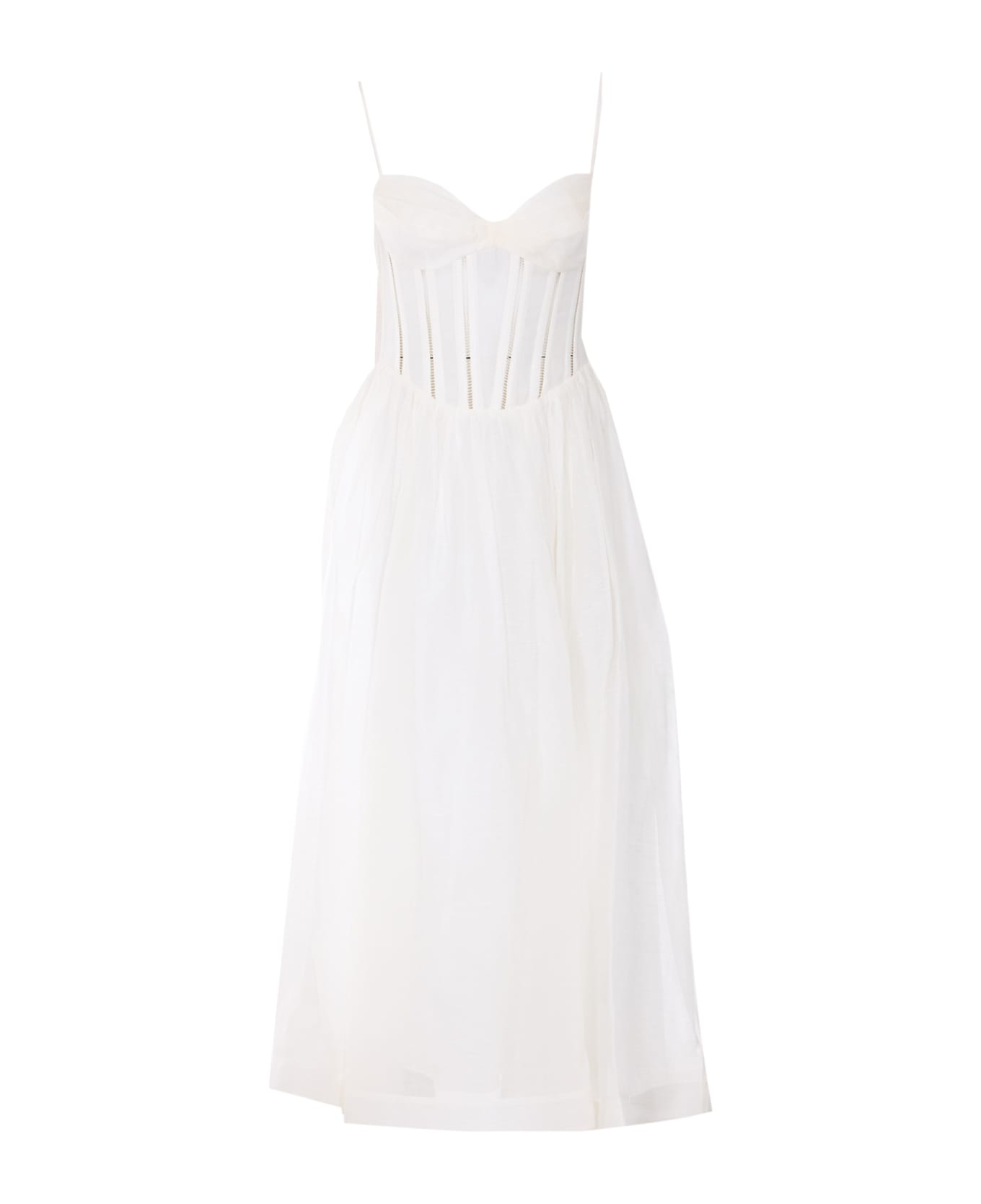 Zimmermann white Luna corset midi dress, zip and hook closure, adjustable shoulder strap Composition: 55% Linen, 45% Silk, 100% Cotton