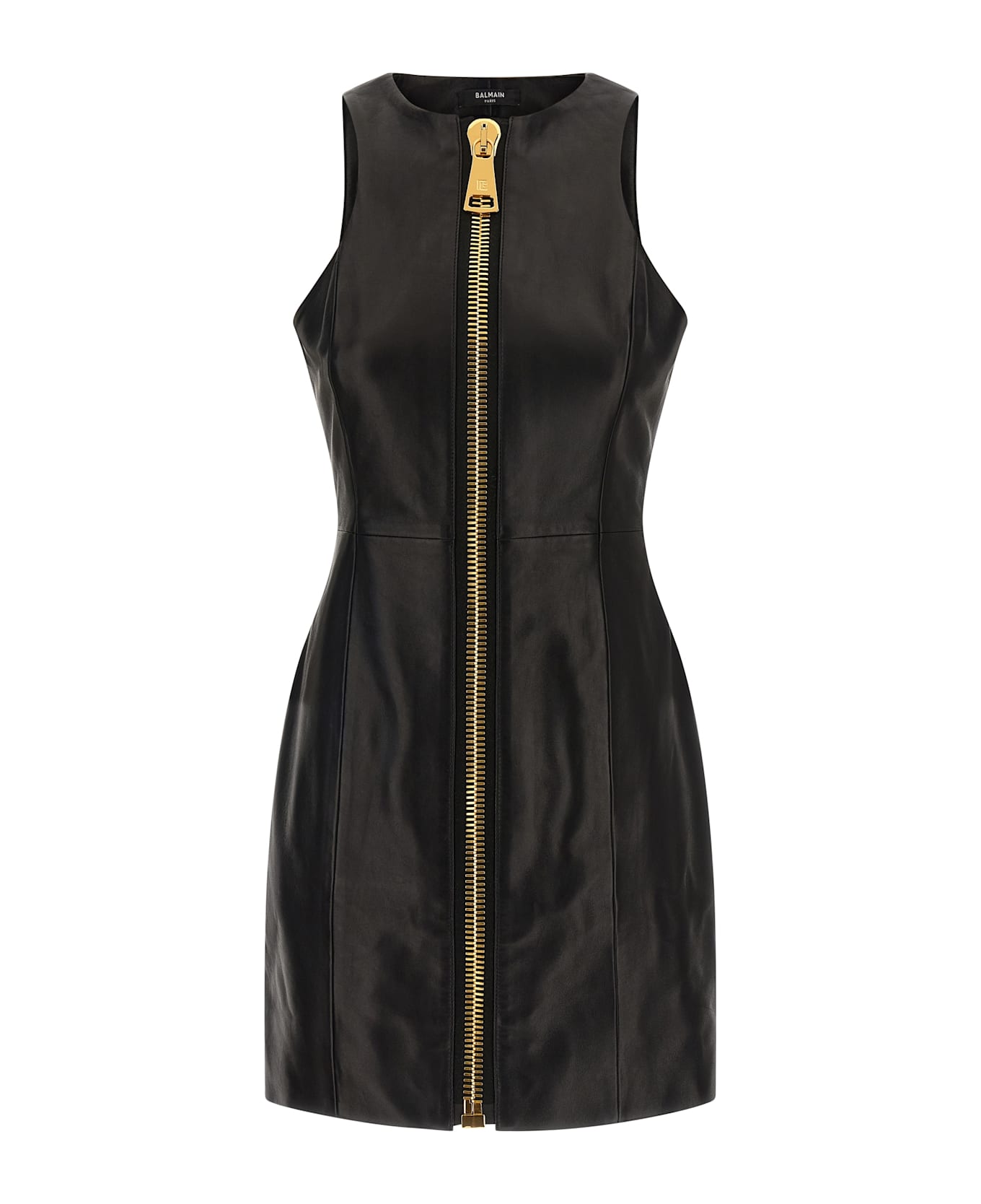 Lamb leather mini dress, panel construction, crew neck, maxi front zip closure, sleeveless, lining. Composition: 100% lamb leather (Ovis aries)