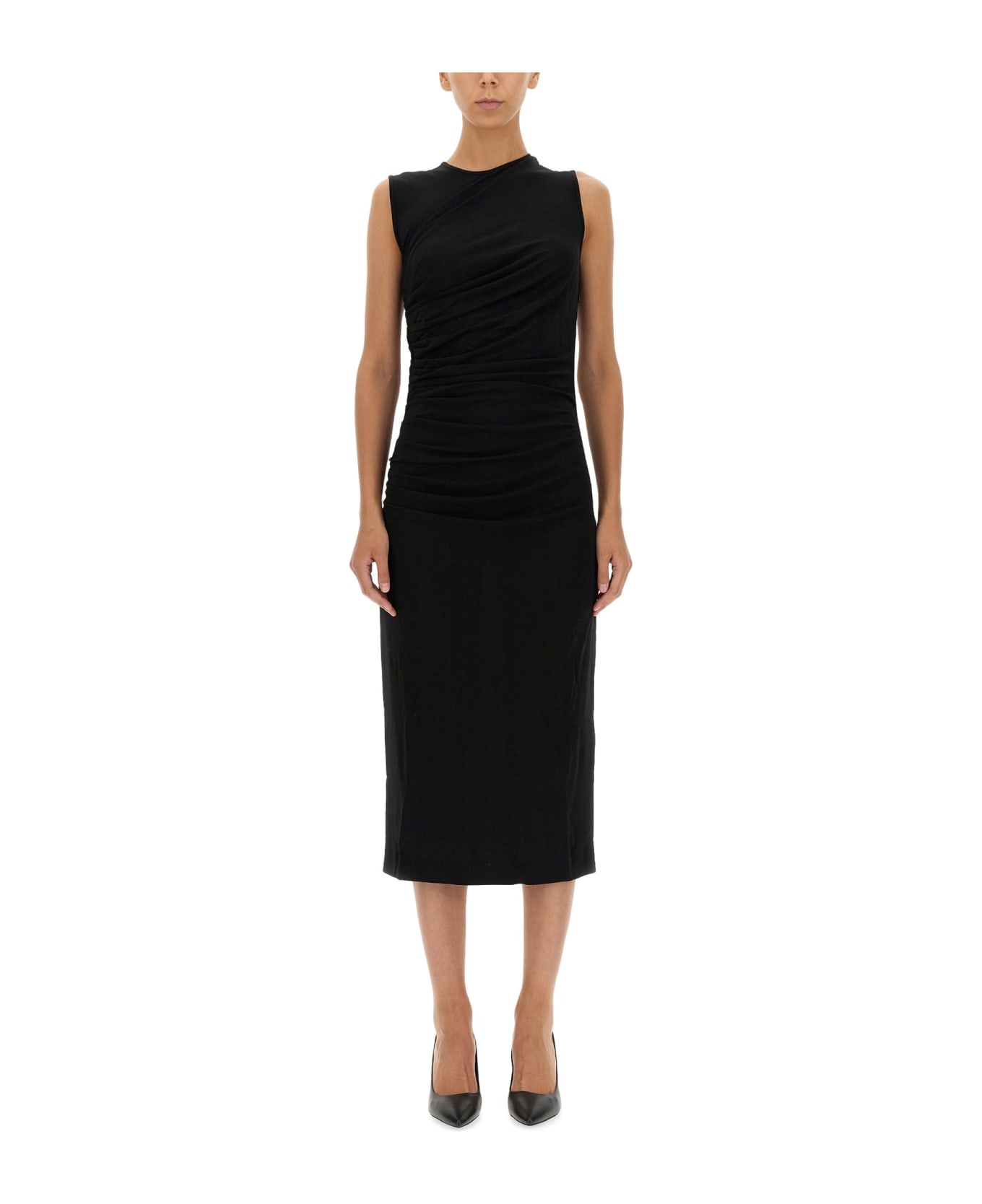 - Zipper Closure- Side Ruffles- Regular Fit- 100% Viscose- Made In Italy- The Model Is 180 Cm Tall And Wears Size S