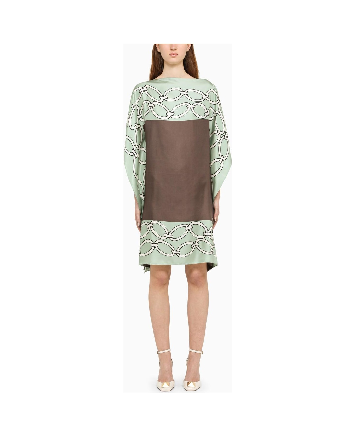 Dress from Valentino in green, black, brown and white silk satin, featuring a straight hem and all-over print. Composition: 100% Silk