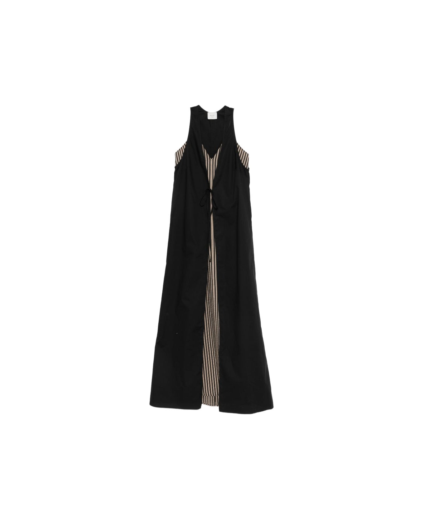 black and beige stripes V-neck drawstring fastening sleeveless split hem Composition: 69% Cotton, 25% Viscose, 6% Seta