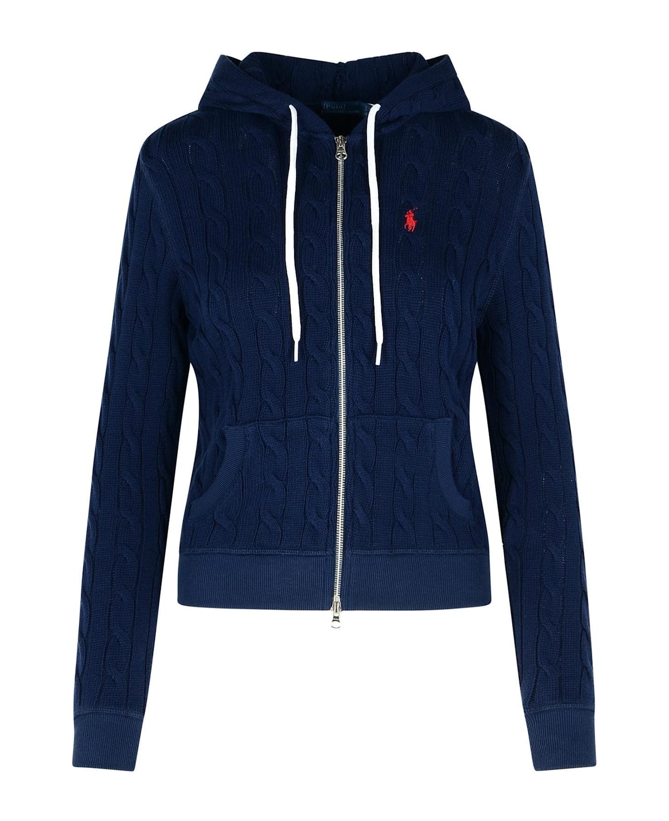 Logo Embroidered Drawstring Zipped Hoodie