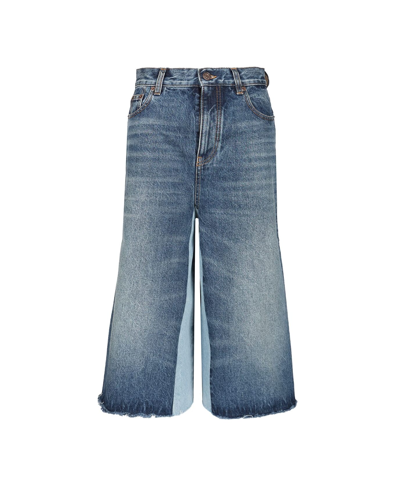 High-waisted Bermuda shorts from Chloè made of cotton denim obtained through a waterless process, with patchwork inserts and finished with a raw hem. Composition: OUTER SHELL: 100% COTTON/PATCH: 100% LEATHER DOMESTIC CALF BOS TAURUS/POCKET LINING: 65% POLYESTER ; 35% COTTON