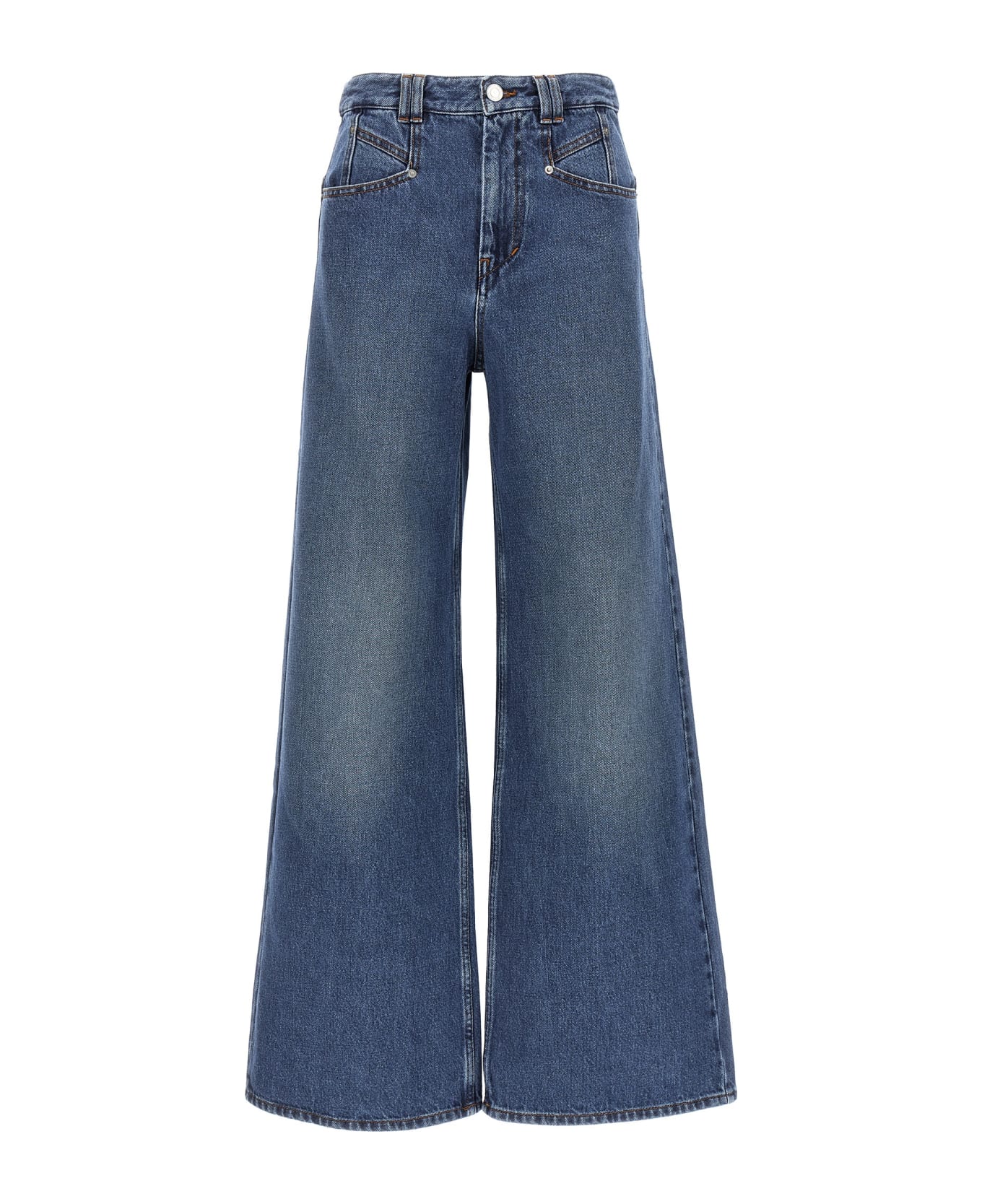 'Lemony' cotton denim jeans with zip and button closure, pockets, leather logo tag, wide leg. Composition: 100% cotton