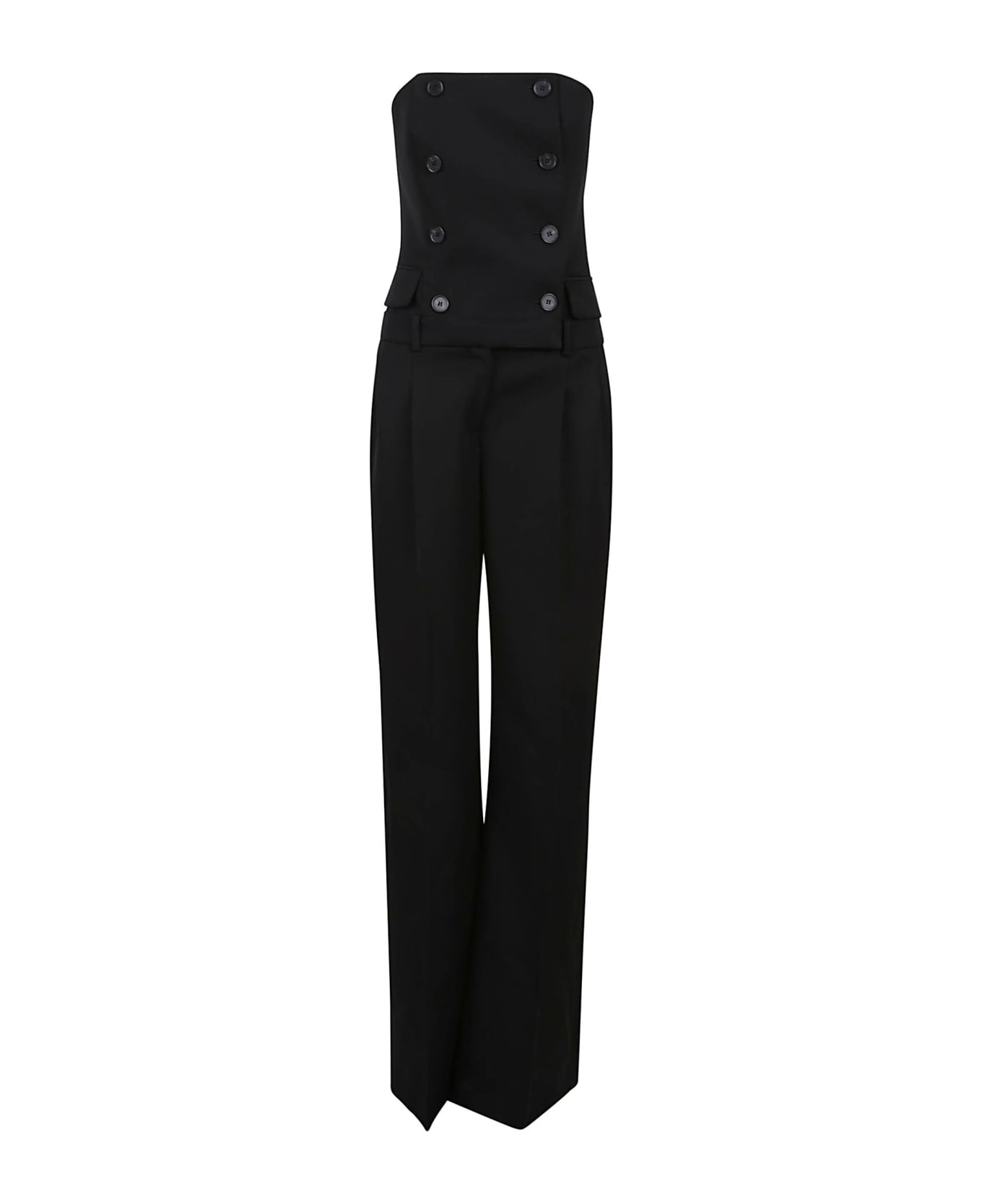 Tailored all in one in barathea wool BY ALEXANDER MCQUEEN. Button closure on the front; two side flap pockets; bustier with integrated stays.