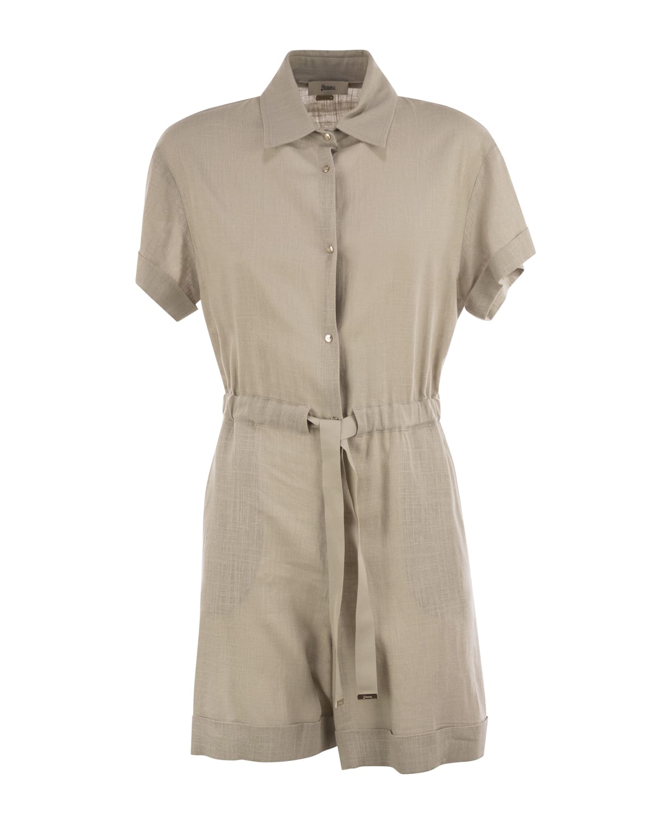 Linen-blend gauze jumpsuit with a light and fluid weave, ideal for the warmer season. The model has a sophisticated line with a collar, soft shorts that gently follow the movements and a grosgrain drawstring to modulate the fit. - Regular fit - Shirt collar - Short sleeves - Grosgrain drawstring at the waist - Flat pockets - Flap at hem - Snap button closure - Made in Italy DESIGNER ID: TT000005D12689 1985