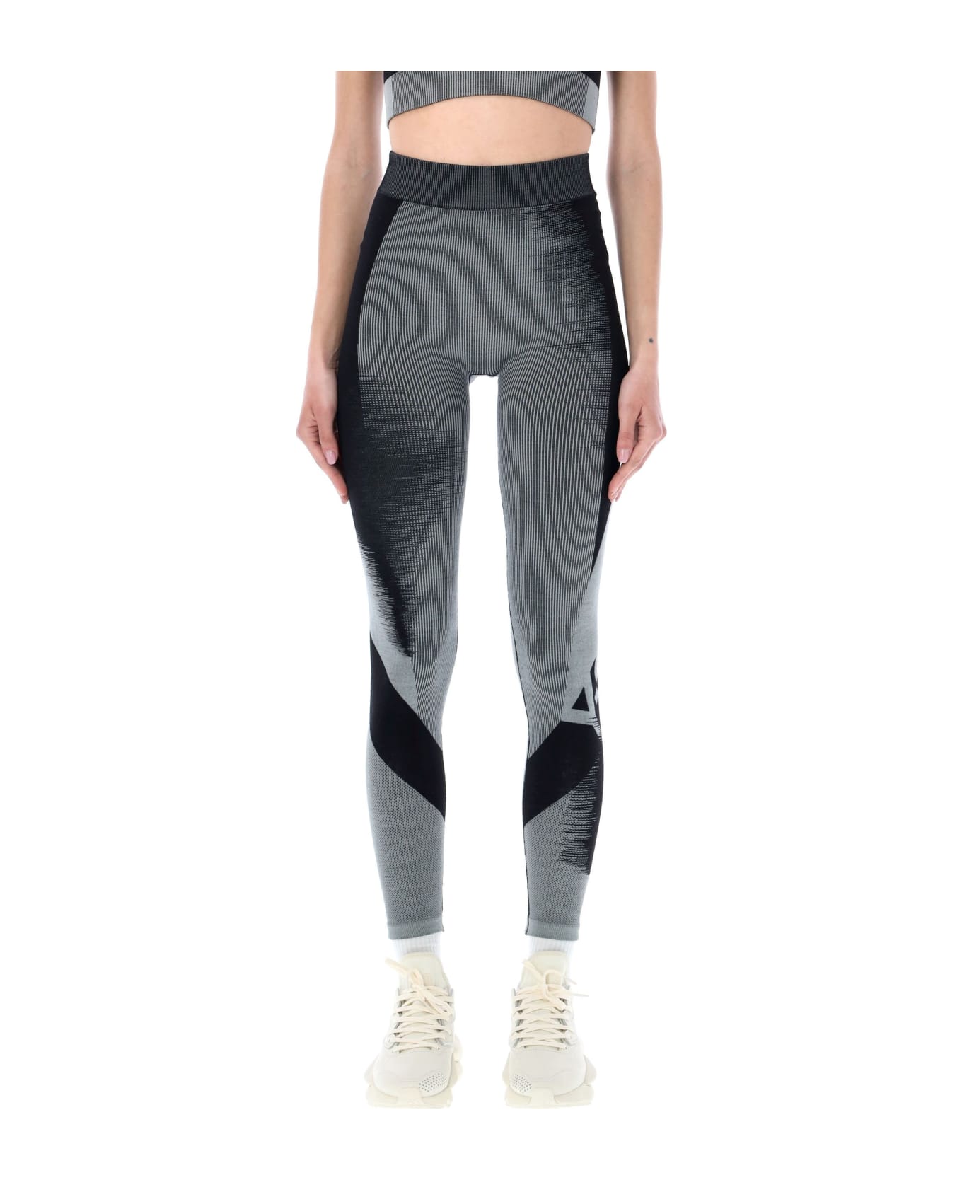 Stretch Active Tights By Y-3. Featuring: High Waist Stretch Ribbed Y-3 Logo At Left Side Model Is 1,72 M Tall And She Is Wearing Size S