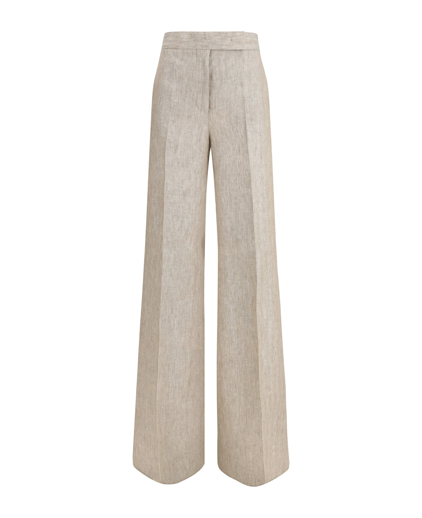 The deserto linen pants by max mara embody essential elegance with a natural character. crafted from lightweight linen, they ensure comfort and breathability with a clean and refined silhouette. the waistband with tab, zip, and hook closure provides a tailored fit, while the french side pockets add a subtle sartorial detail. a versatile piece, perfect for contemporary and sophisticated looks.