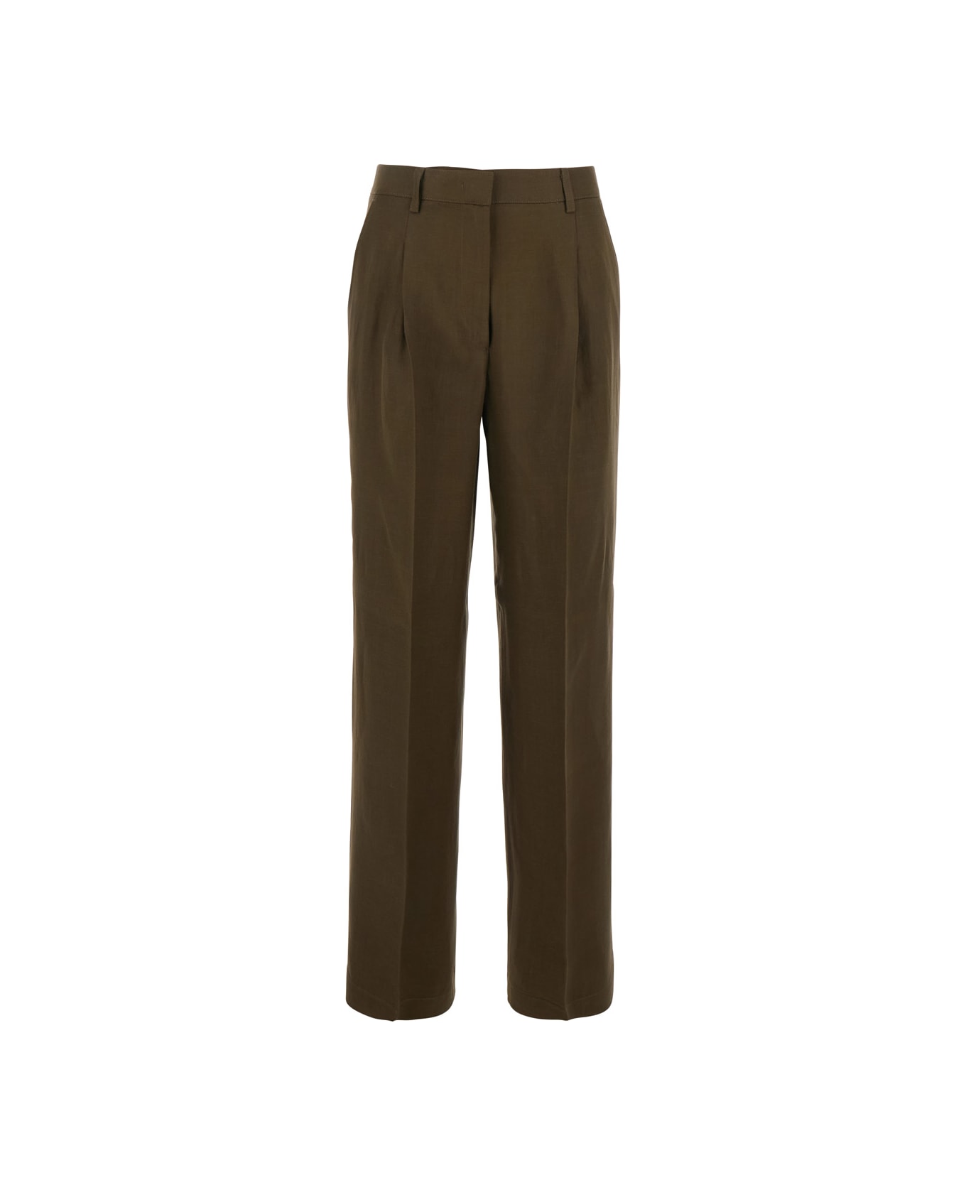 Green Pants With Belt Loops And Pleats In Viscose And Linen Blend Woman