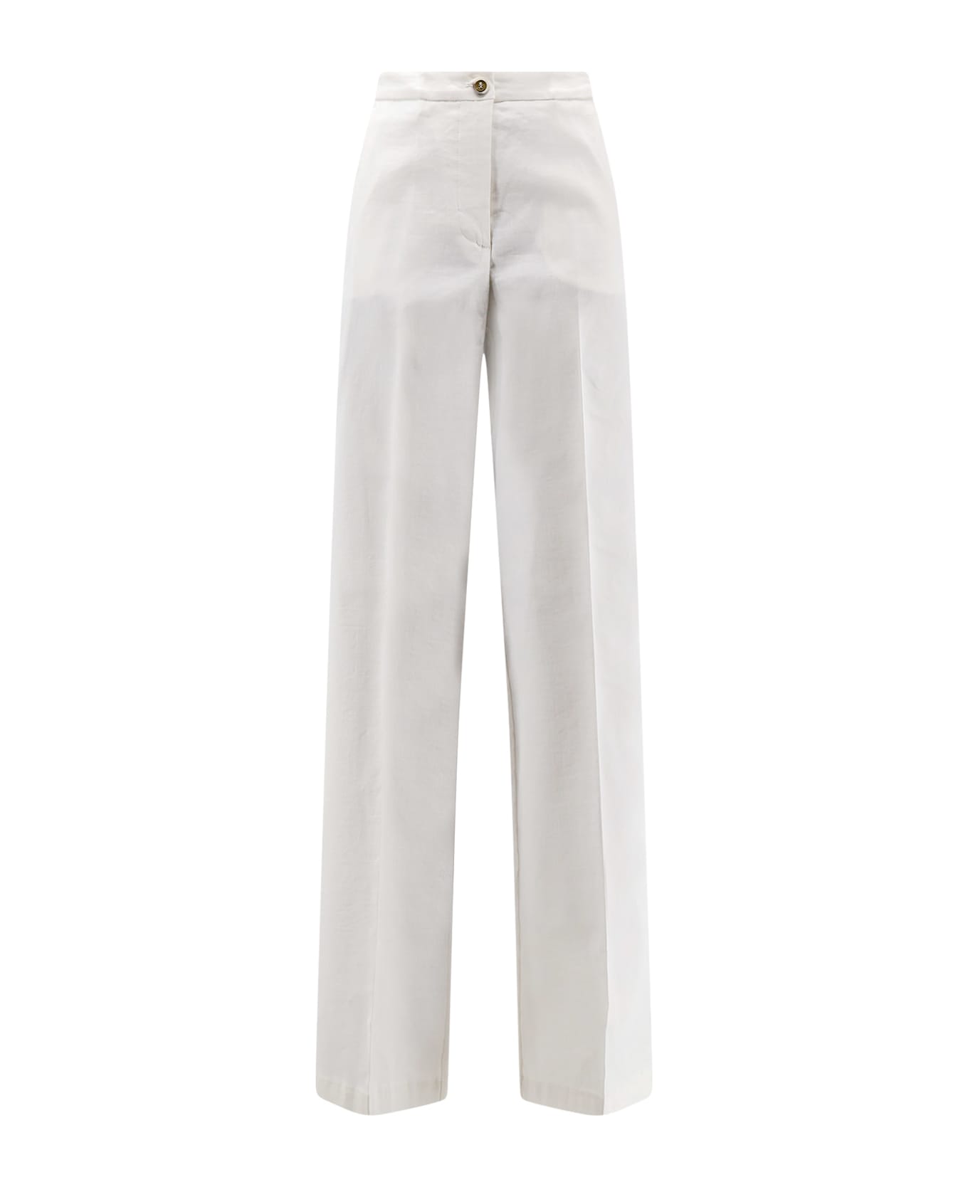 Zip and button closure Slant pockets on the front Welt pockets on the back Wide leg Made in Italy 60% linen, 35% viscose, 5% elastane SKU: 104929A34IZ05