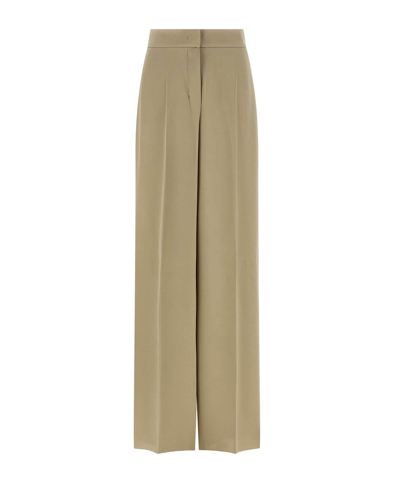 'Mxepalanca' tailored silk trousers with double front pincer, wide leg with central stretched pleat, hook and button zip strip closure at the waist, belt loops at the waist, French side pockets and welt pockets on the back.