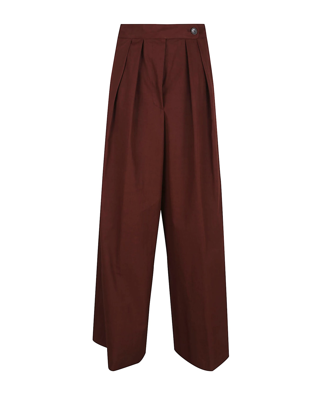 wide cotton trousers with pleats on the front button and covered zip side pockets