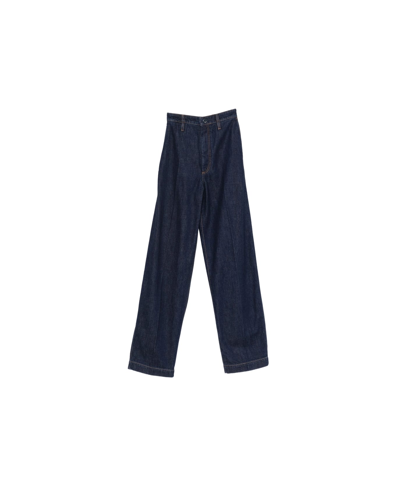 dark blue button fastening belt loops