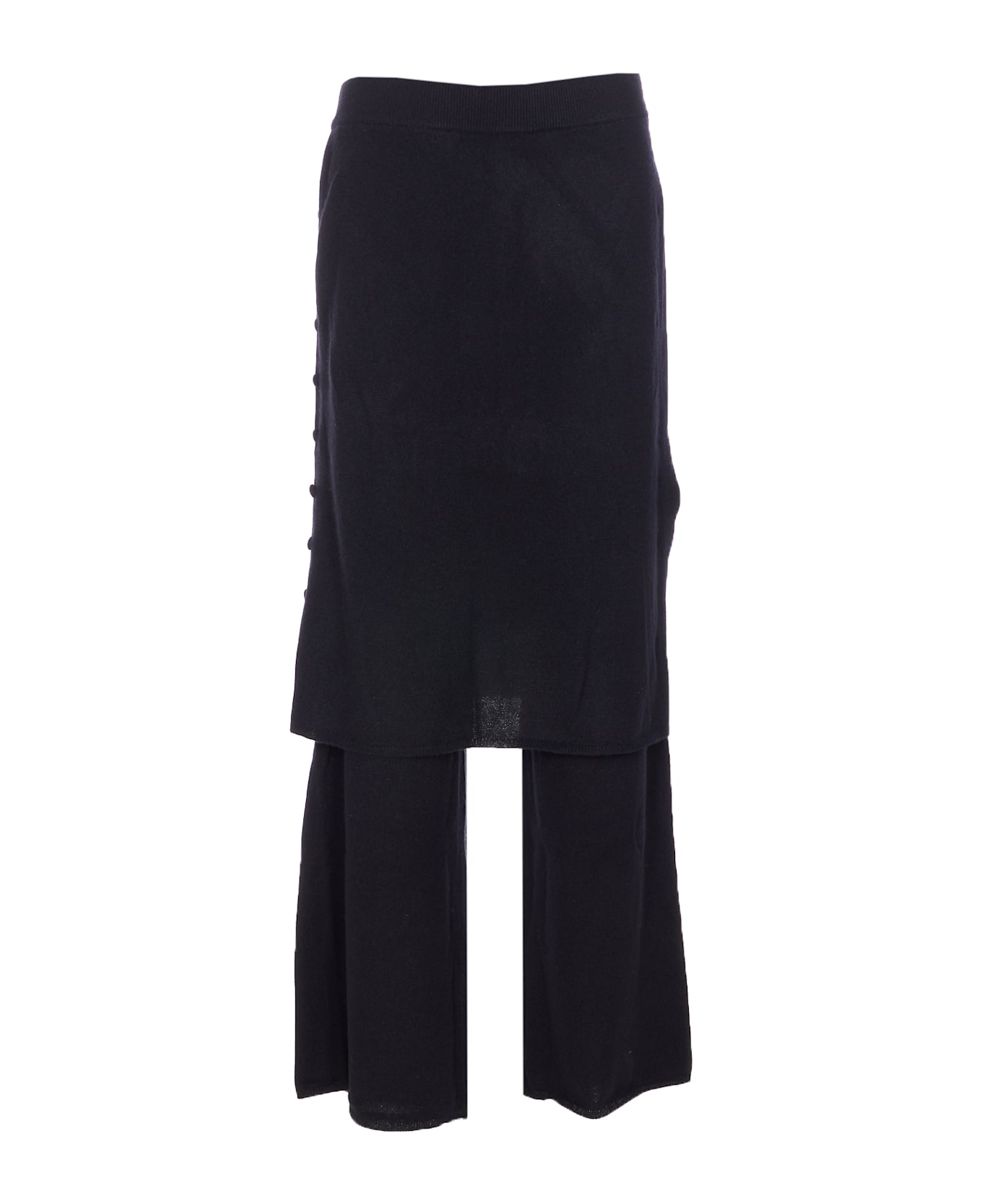 Lisa Yang black pants, elasticized on waist, double layered, skirt with buttons on side