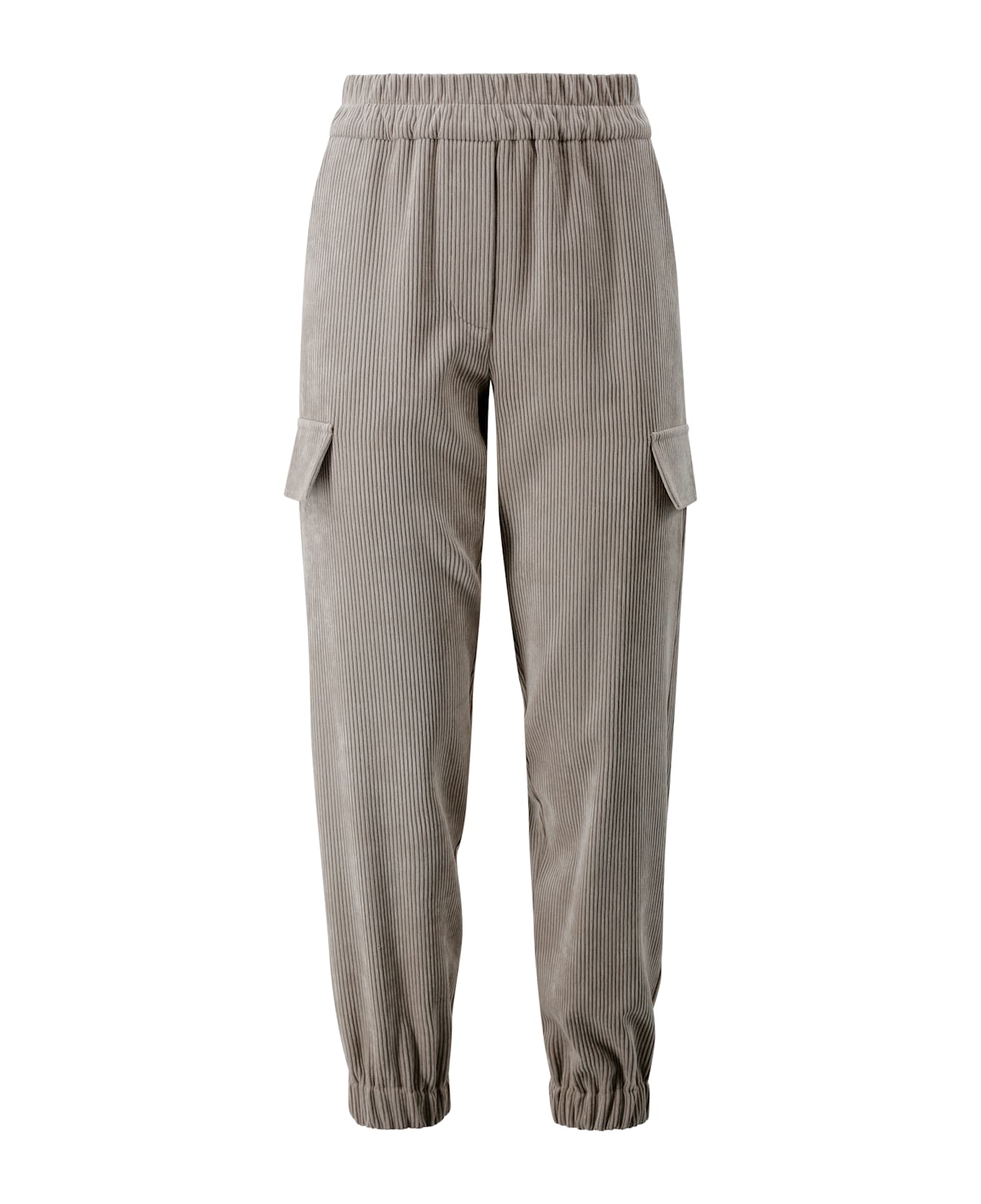 Corduroy jogging pants with side pockets and elastic waist and ankle bottoms.