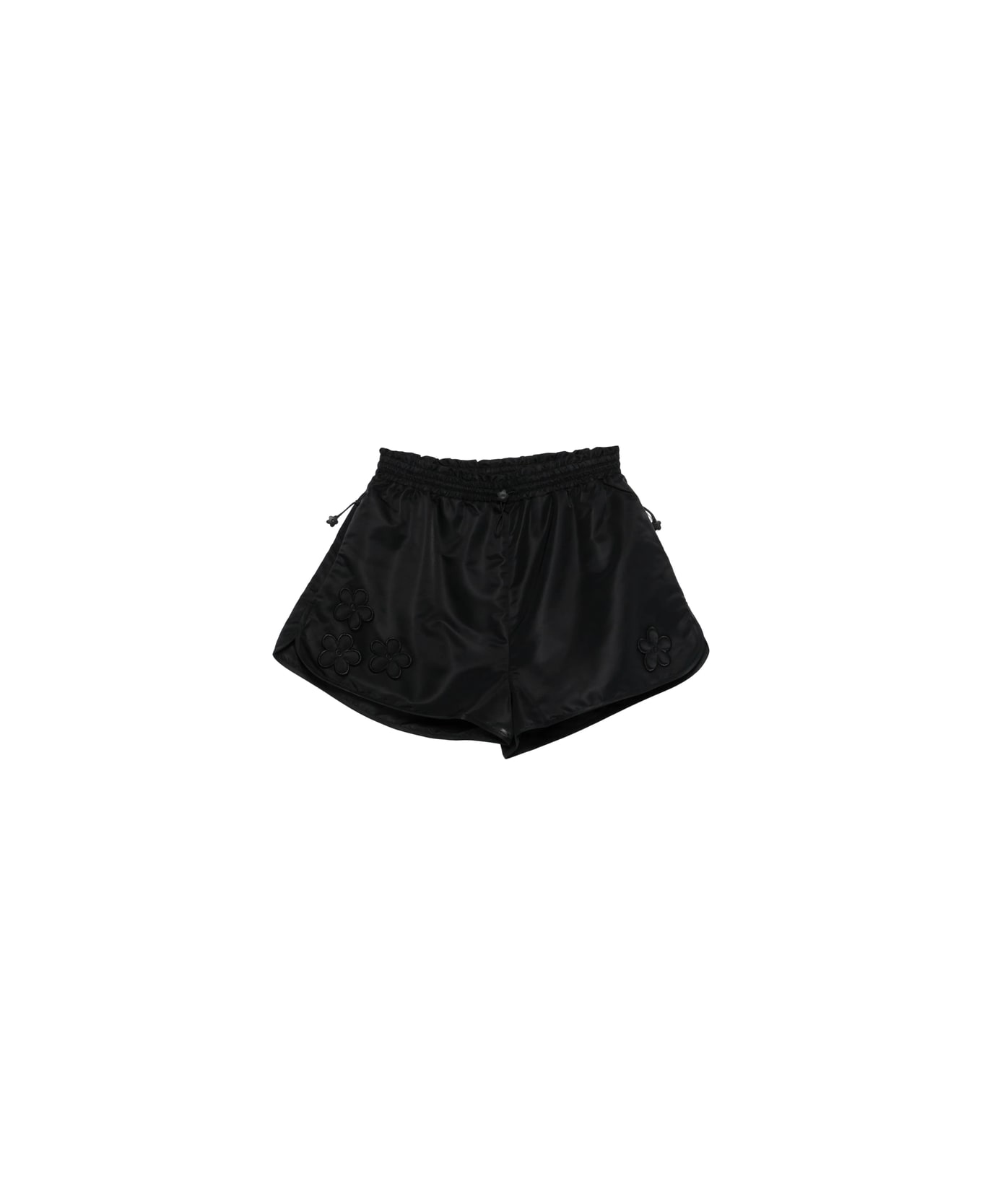 black floral appliqué drawstring fastening elasticated waistband tonal stitching