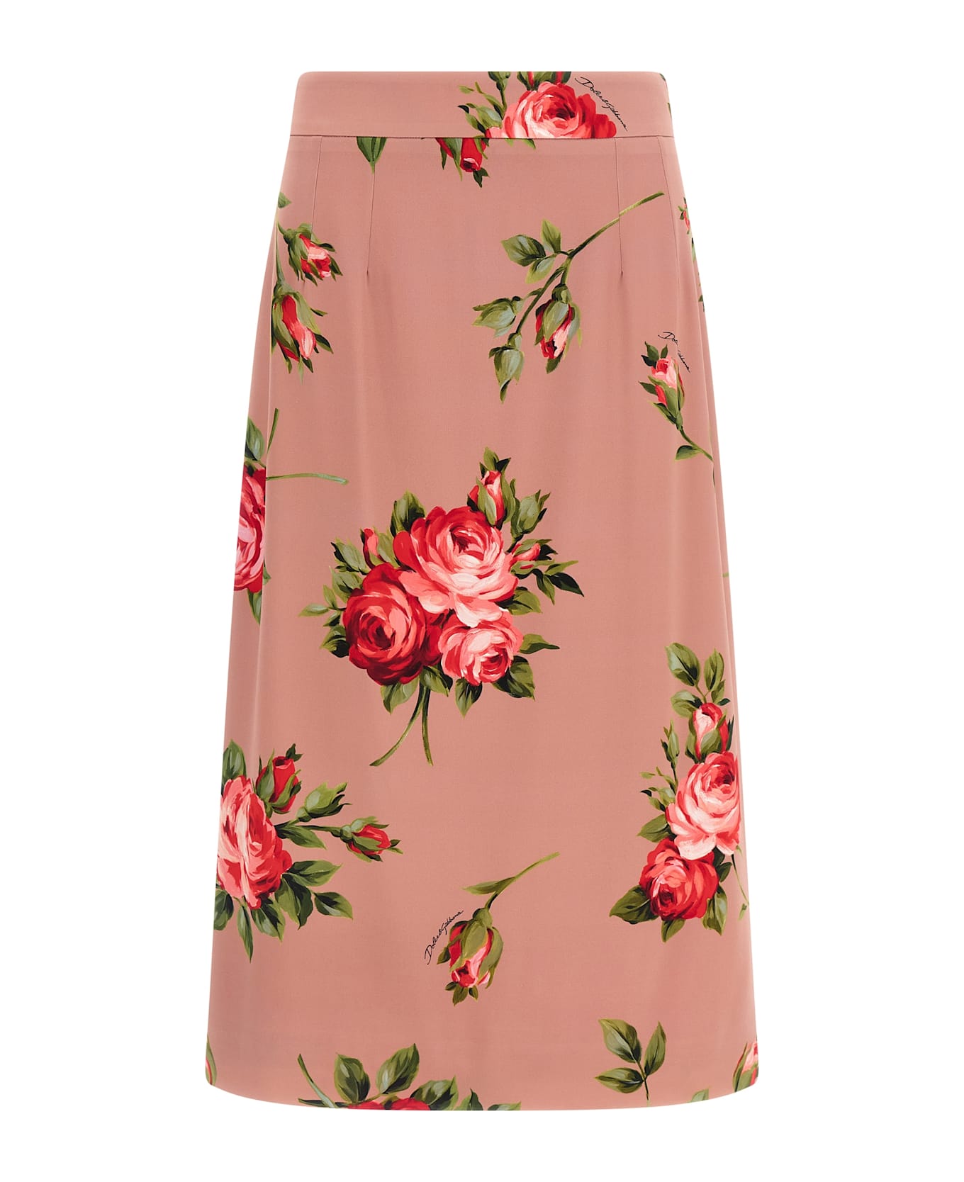 'Bouquet Rose' print silk midi skirt, straight silhouette, front and back pleat, zip closure and back split. The differences in print placement you might find on this product is a characteristic of Dolce&Gabbana's Handmade products. A peculiarity that makes each garment or accessory unique and exclusive.