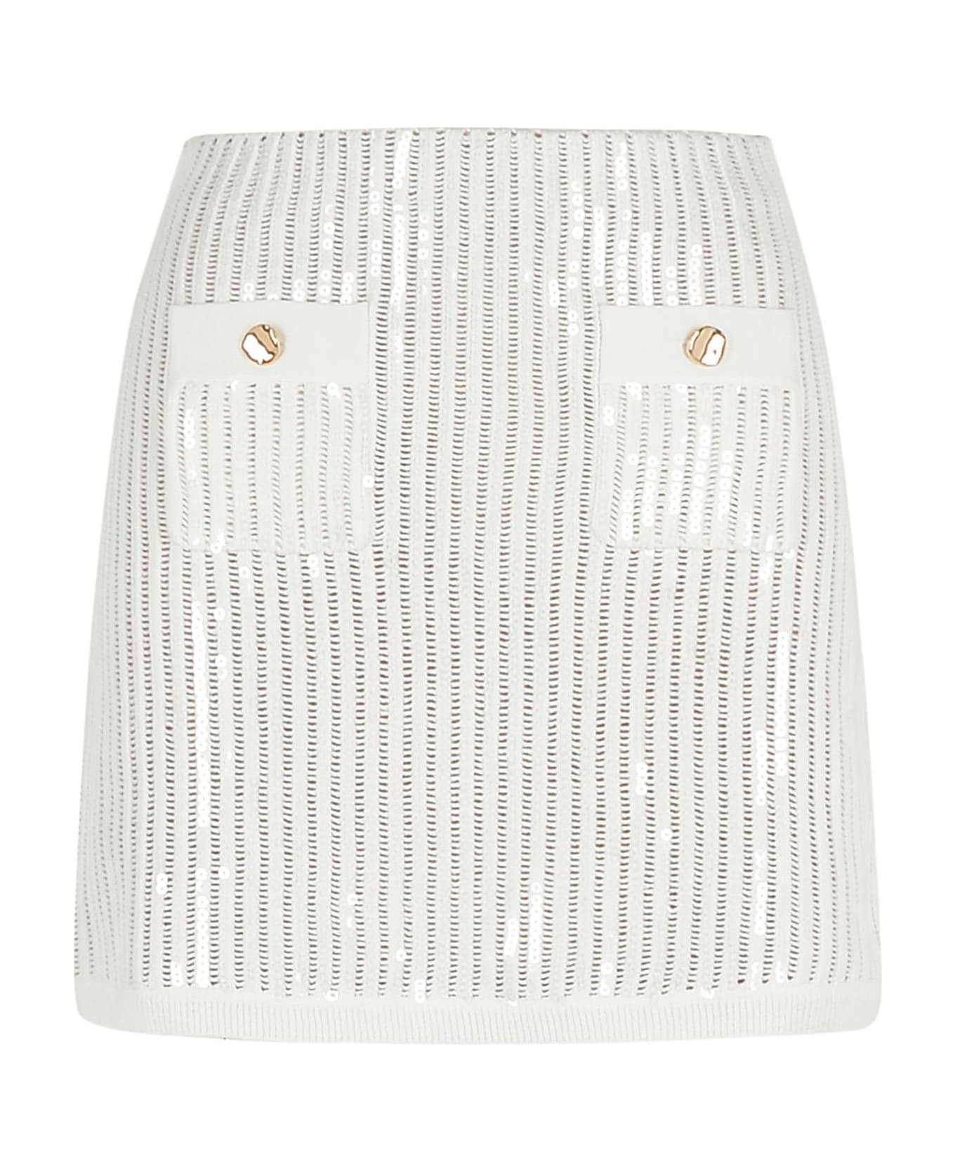 Elastic waistband, two front pockets, ornamental buttons, sequin trim Composition: 96% cotton, 4% cashmere