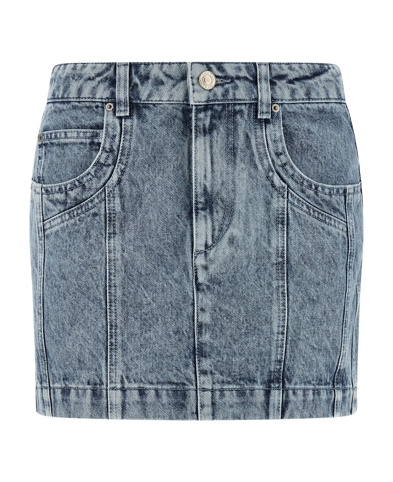 'Juana' cotton denim miniskirt, front zip and button closure, five pockets, back leather logo tag. Composition: 100% cotton