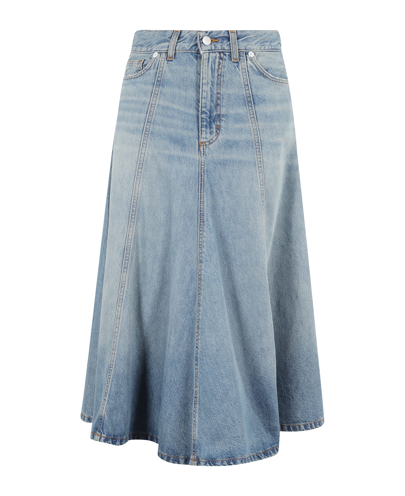 Mid Serenity skirt - Haikure - Blue color - High waist with belt loops - Flared design - Five-pocket pattern - Front button and zipper closure - Regular fit