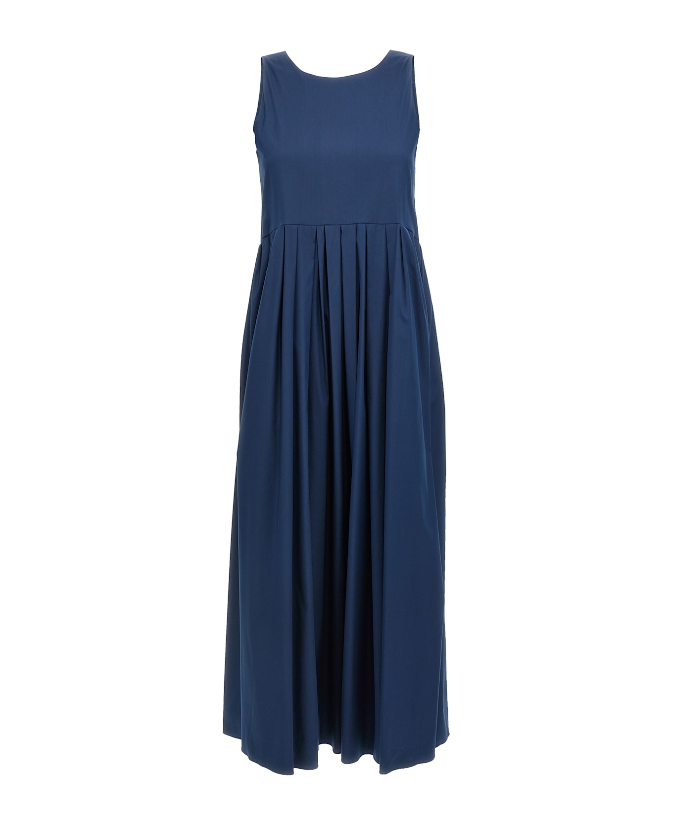 Long 'Moira' dress in stretch cotton poplin with flared silhouette with pleated skirt, American-neckline, sleeveless, pockets, back zip closure. Composition: 80% cotton 18% polyamide 2% elastane