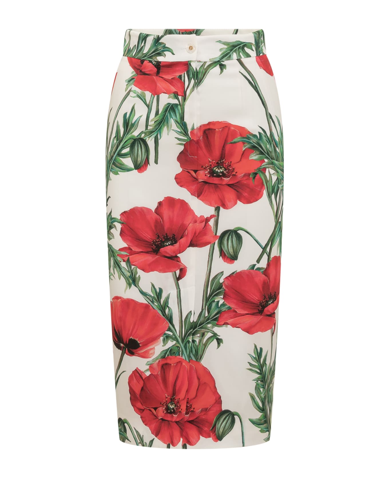 Long skirt. Button and zip closure. Papaveri print. Composition: Outside:, 94% Silk, 6% Elastanelining:, 91% Silk, 9% Elastane