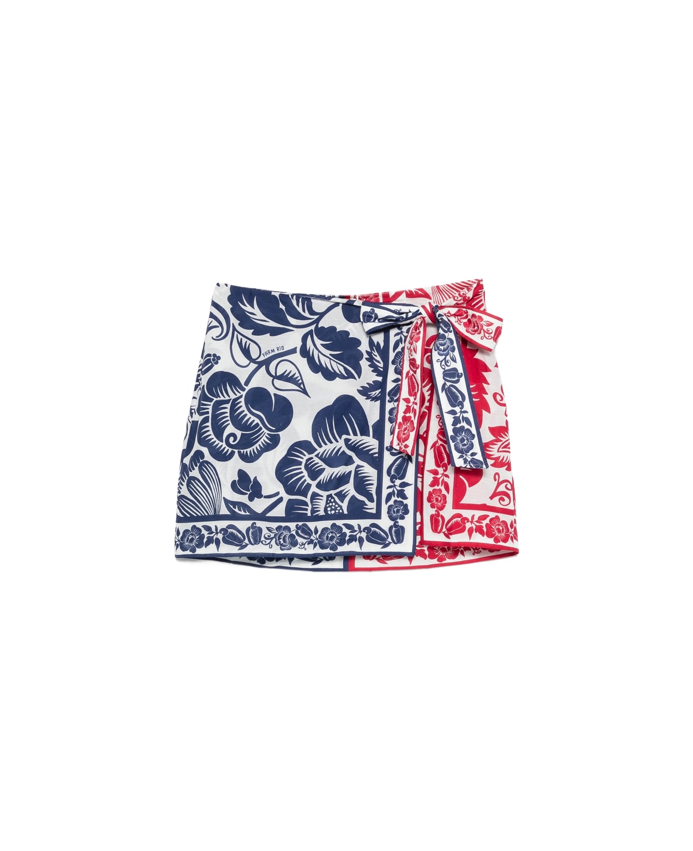 blue / red floral print mini length self-tie fastening