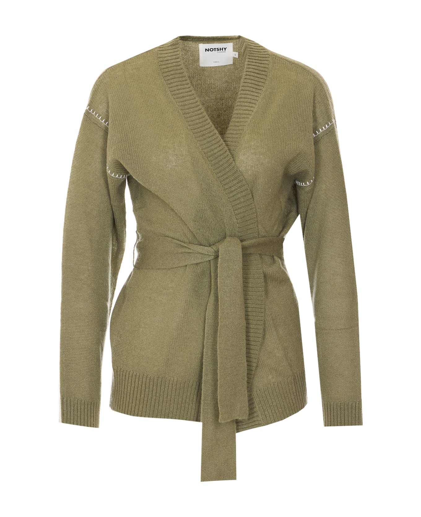 Not Shy olive Loli cardigan, belt on waist, long sleeves, v-neck Composition: 100% Cashmere