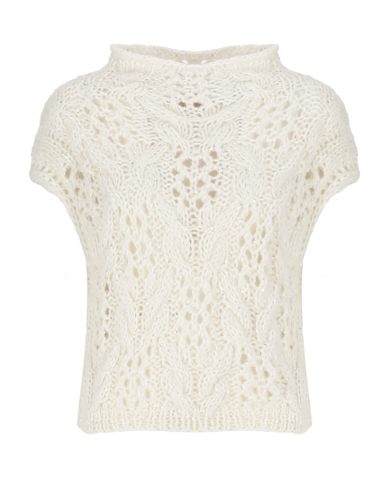 - Ivory Antonelli Firenze alpaca blend sweater for woman - Crewneck - Sleeveless - All-over sequins pattern - All-over cut-out details - All-over braided pattern