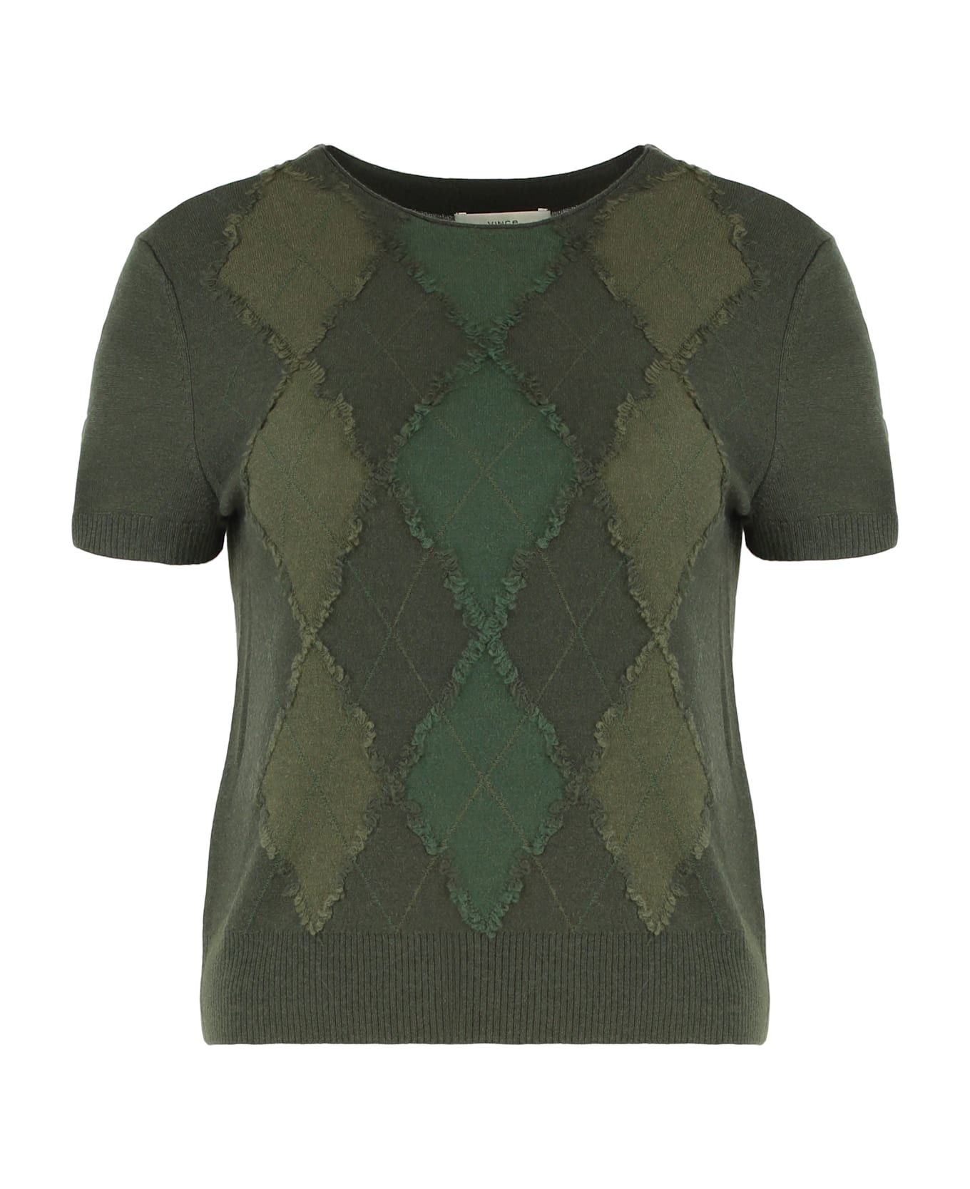Sweater with short sleeves, hand-cut, with a diamond pattern and slightly fluffy and rough edges. its appealing mix of wool and cashmere creates a sensation of sumptuousness and lightness, ideal for the fresher autumn days. perfect to be paired with casual pants or jeans, this shirt is a versatile addition to your wardrobe.