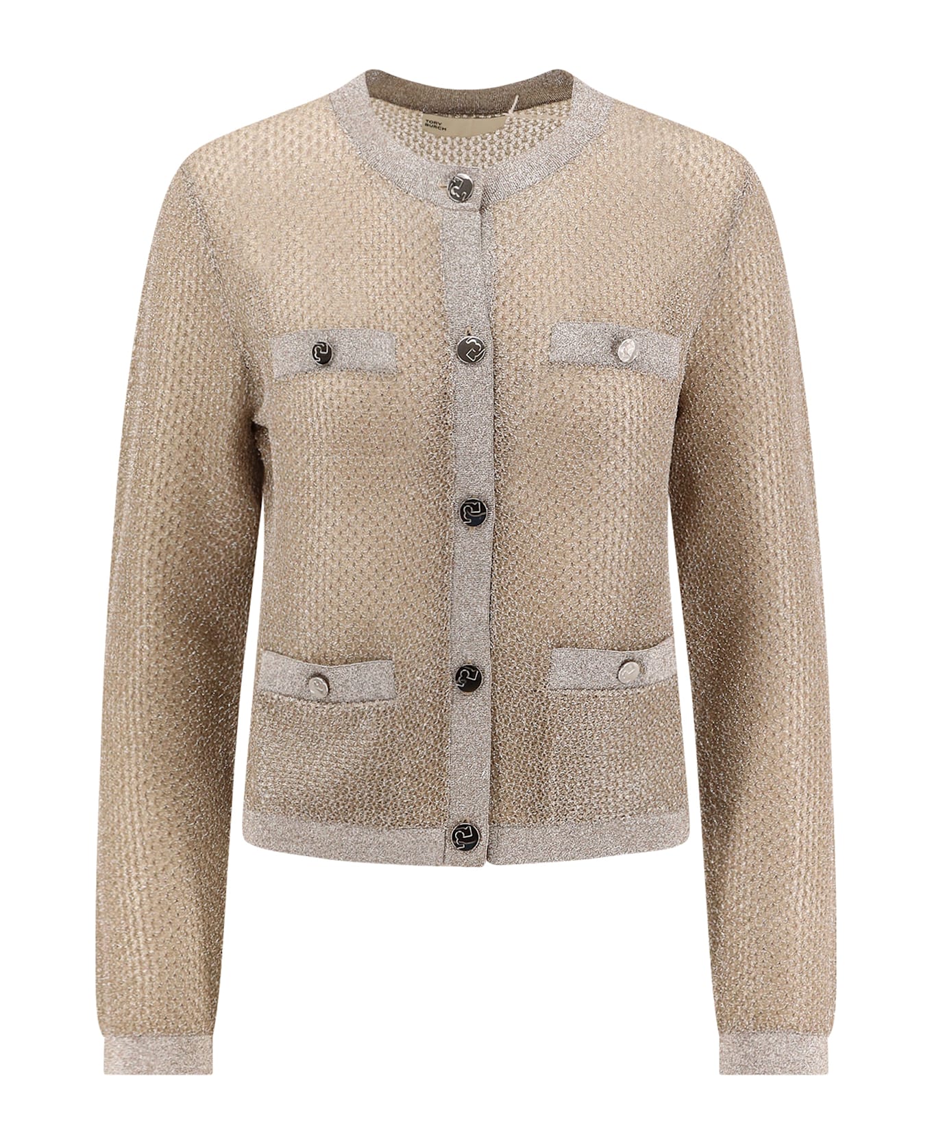 SKU: 167225_107 - Closure with silver metal buttons ribbed crew-neck four pockets on the front lurex effect 65% polyester 20% metallic fibre 15% polyamide