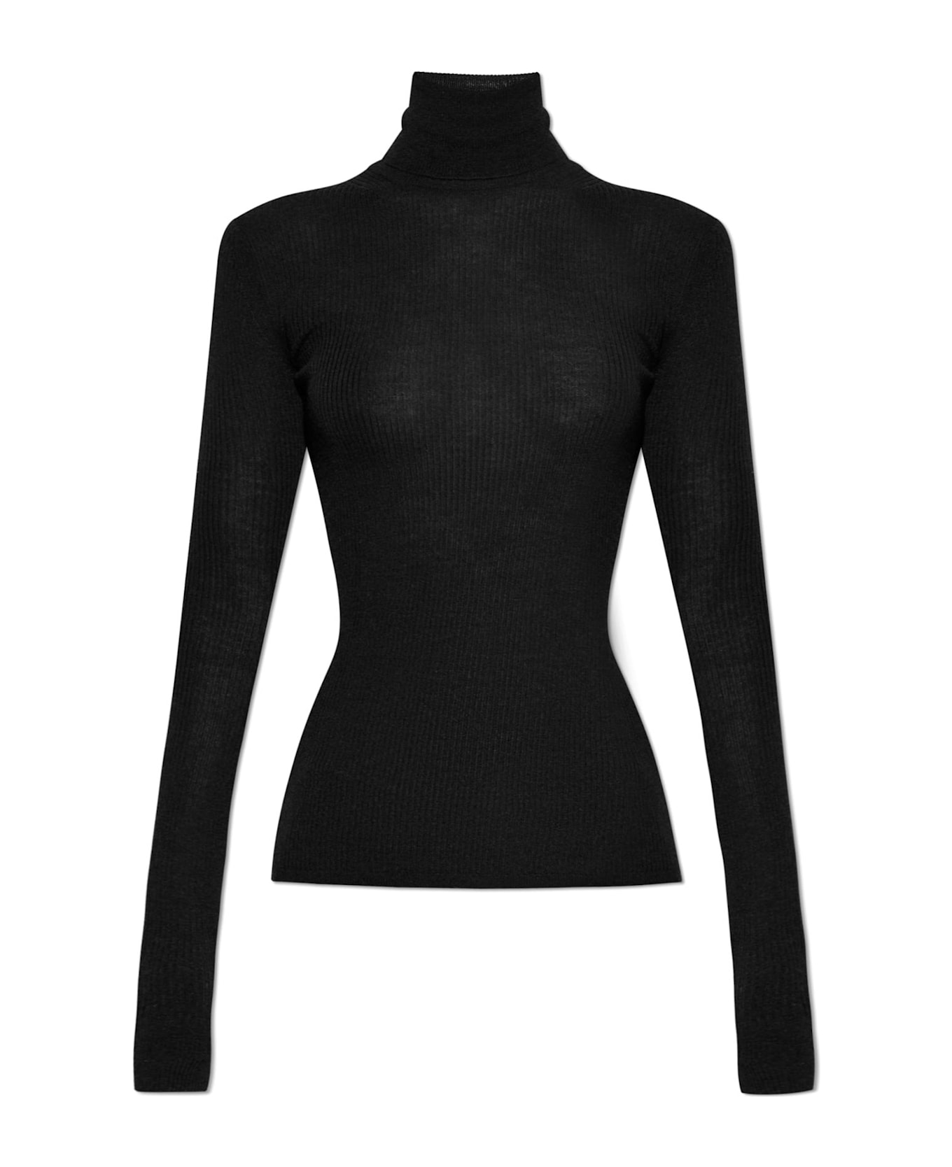 Elevate your wardrobe with the Lanvin Fitted Turtleneck a masterful embodiment of timeless Parisian sophistication. Crafted from a refined blend of wool, silk, and cashmere, this ultra-soft, lightweight knit features a ribbed texture that gracefully elongates the silhouette. The tailored cut and pronounced shaping flatter the figure, while the sleek, high neckline and long, slim sleeves exude understated elegance. Subtly semi-sheer and free from overt branding or embellishments, its minimalist design echoes Lanvin's enduring legacy of chic innovation. This piece delivers both luxurious comfort and modern allure, perfect for discerning tastes. Why choose this product? Exquisitely soft blend of natural fibers Figure-sculpting, elegant silhouette Luxurious ribbed knit with contemporary transparency Iconic French craftsmanship by Lanvin Versatile, minimalist design for elevated styling