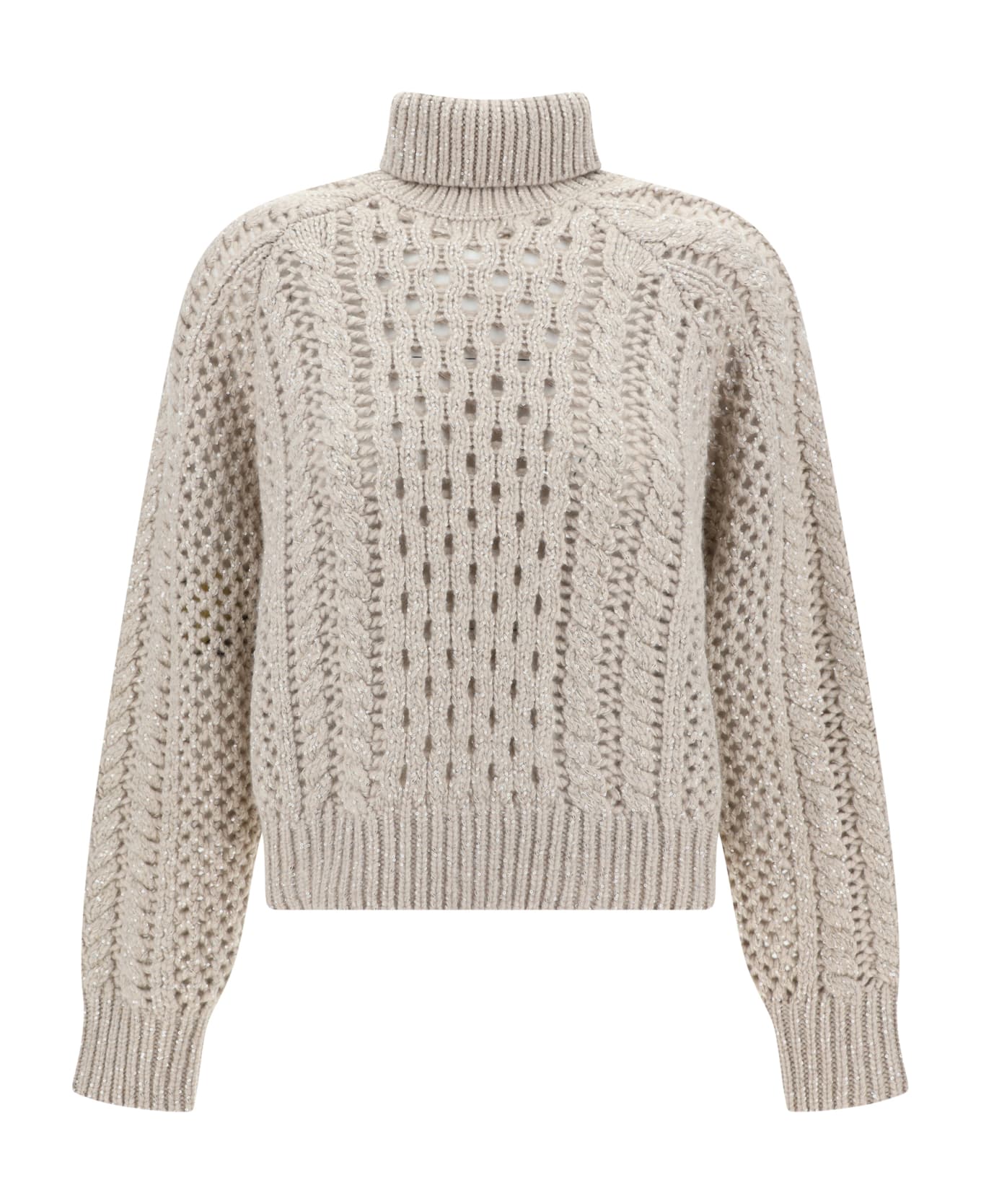 Cashmere turtleneck sweater by brunello cucinelli, a ribbed turtleneck, a monochrome perforated knit design embellished with bright sequins, ribbed cuffs, and a ribbed hem.