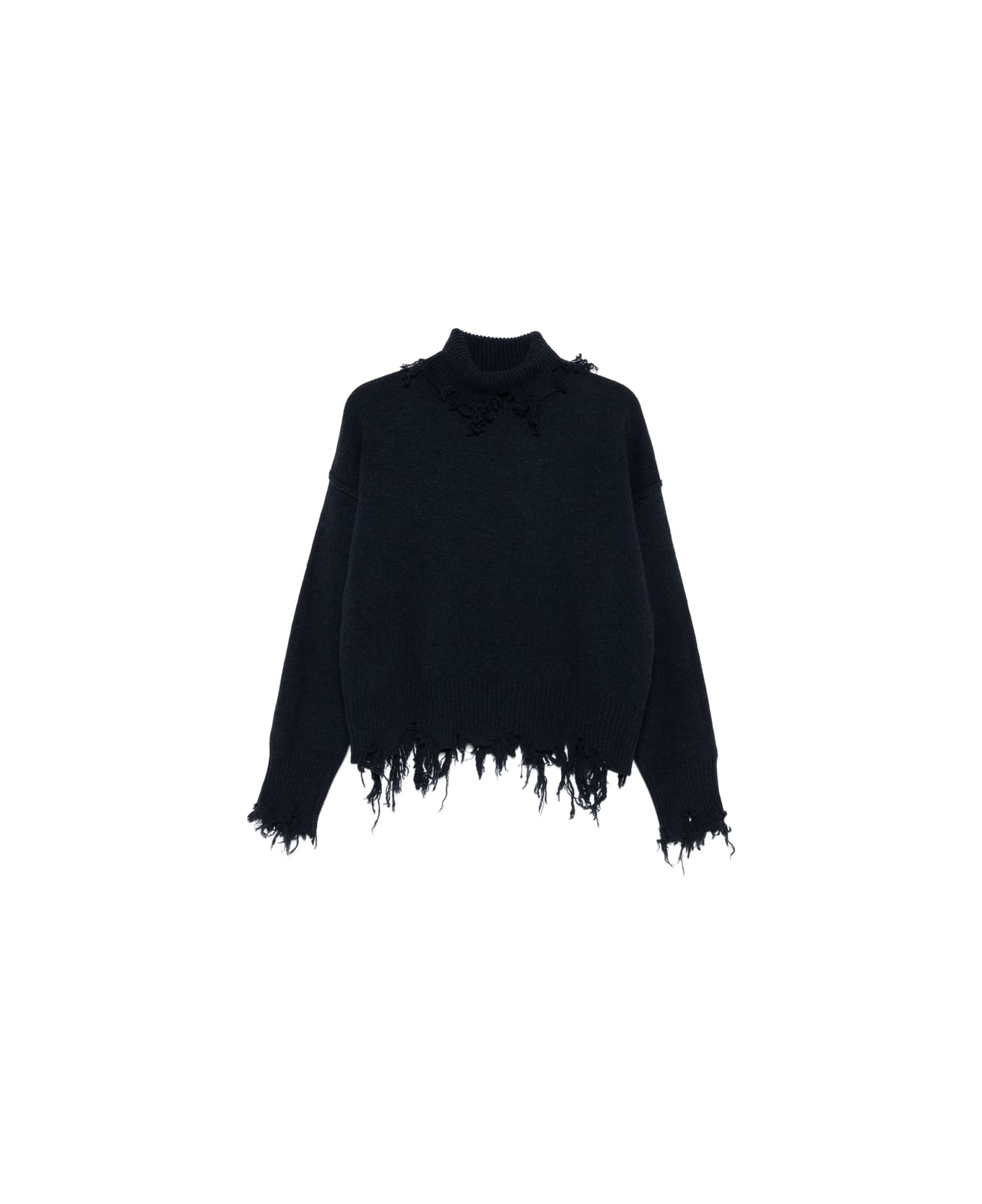 black high neck frayed edges long sleeves ribbed hem