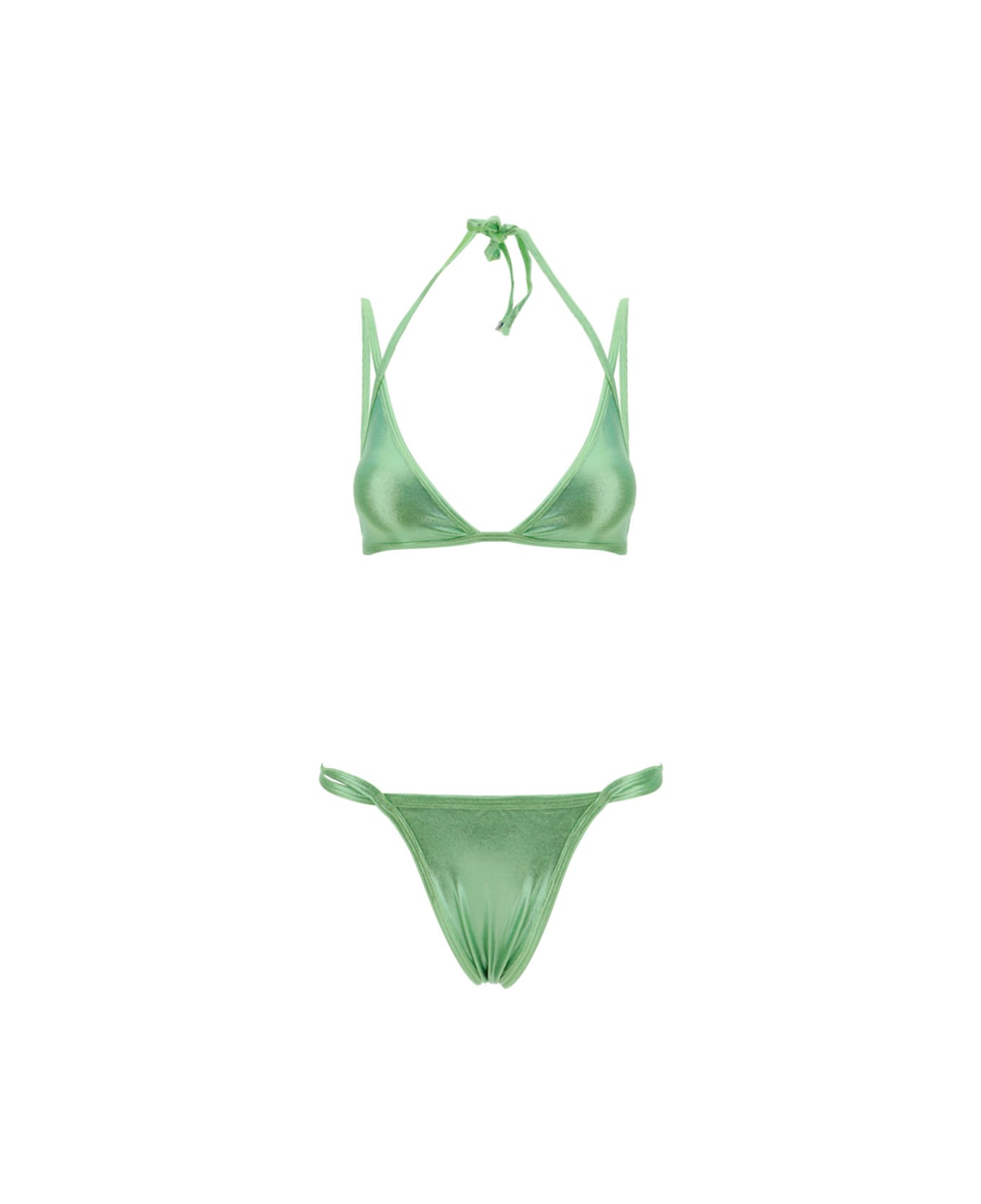 Mint bikini by the attico, bikini model, triangle top, classic straps, ribbon detail to tie in back, classic bottom with double elastic on hips, monochrome metallic effect pattern. Composition: 100% % Nylon