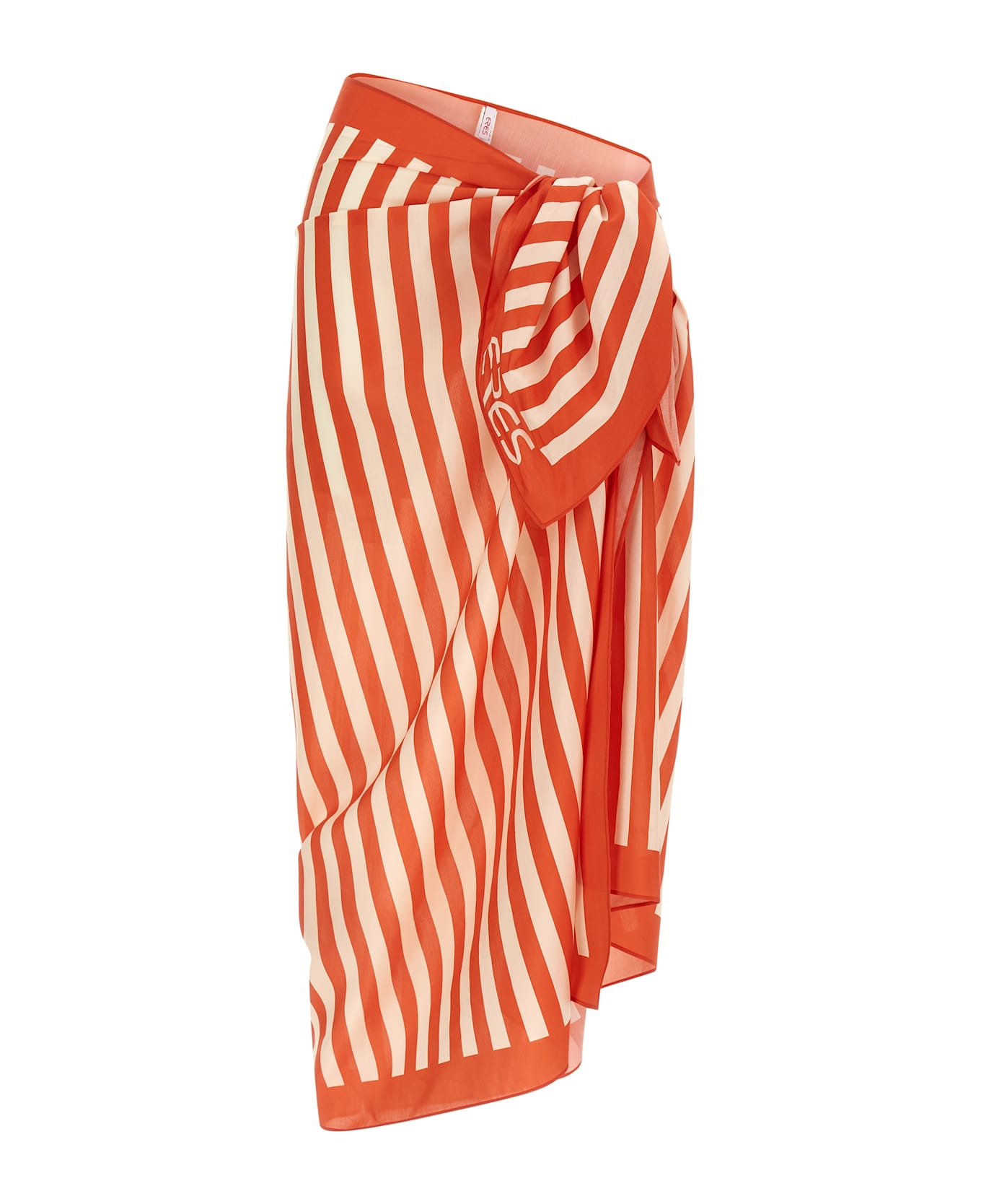 'Symbiose' silk cotton sarong skirt with striped print, to be knotted.