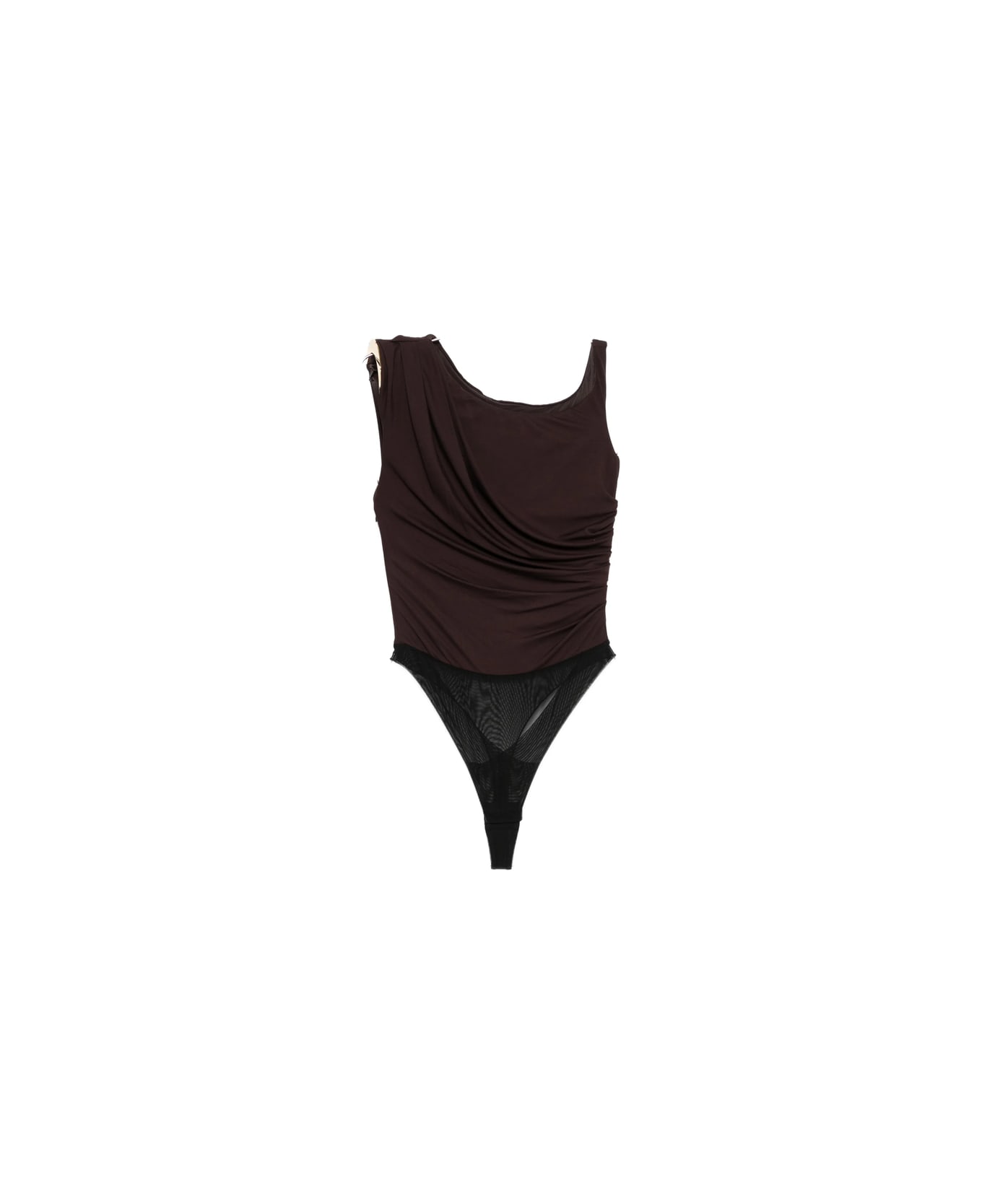 dark brown one-shoulder draped detail sleeveless gathered detail Just a reminder that this piece must be tried on over your own garments.