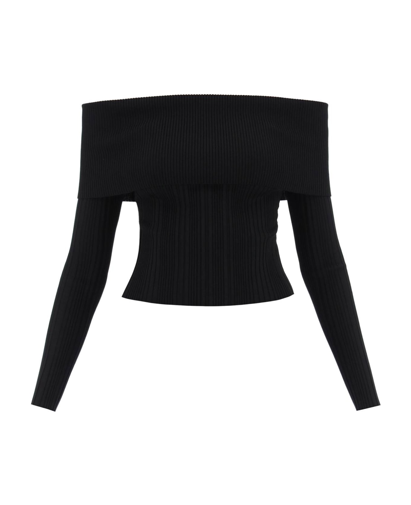 Short and fitted, this Self-Portrait's long-sleeved top is made from stretch rib knit and boasts an off-the-shoulder neckline with fold-over detail. The model is 177 cm tall and wears a size S.