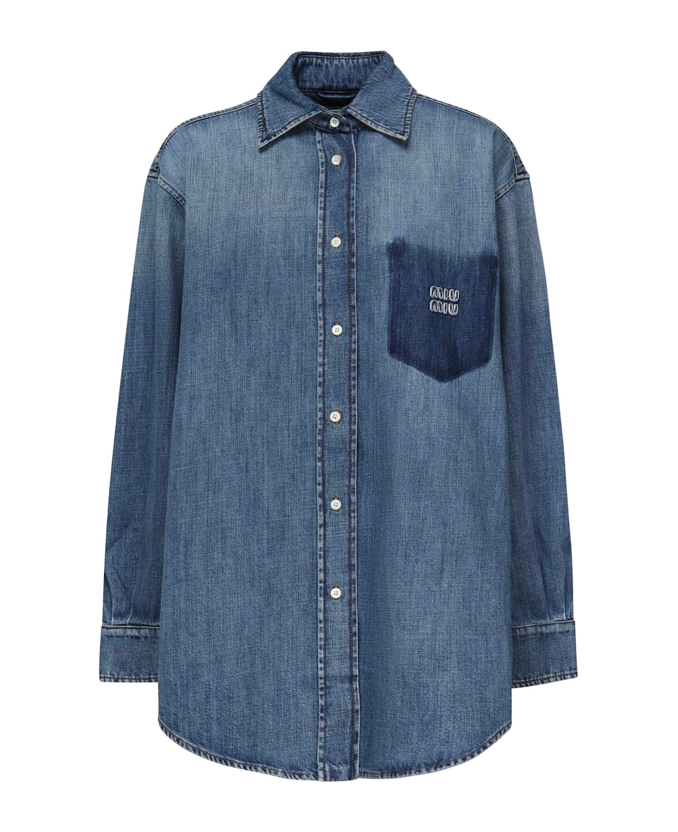 -Made of washed denim -Embroidered logo -Front button closure -Sleeves with cuff -Unlined -Contrasting stitching -Made in Italy -The size shown in the photo is 40 IT -Color: Light blue