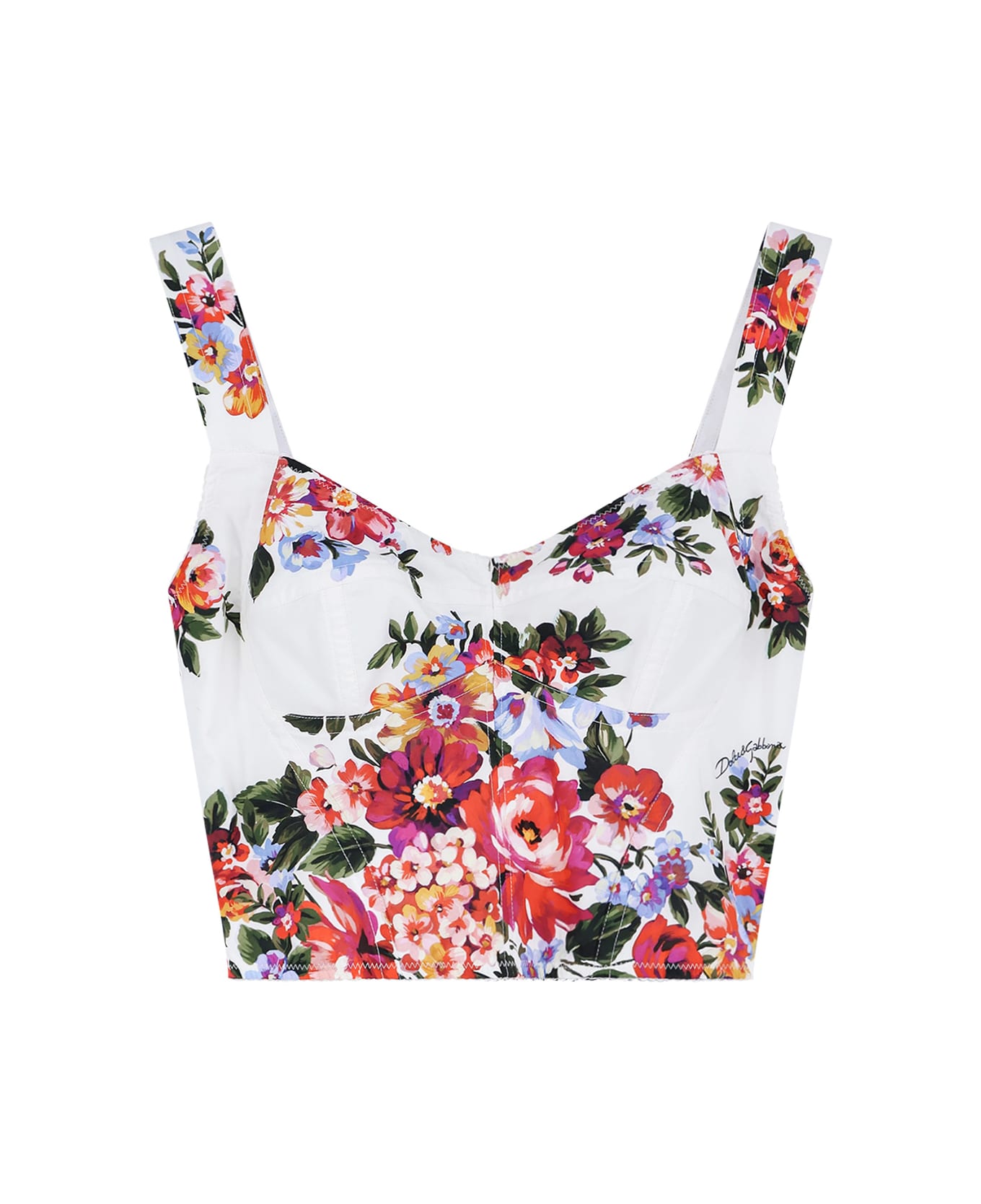 Hook closure at the back Side stays Crop fit Multicolor floral print Made in Italy 70% cotton, 25% nylon, 5% elastane Lining: 68% cotton, 22% nylon, 10% elastane SKU: F7BB1THS5UUHA5ZO