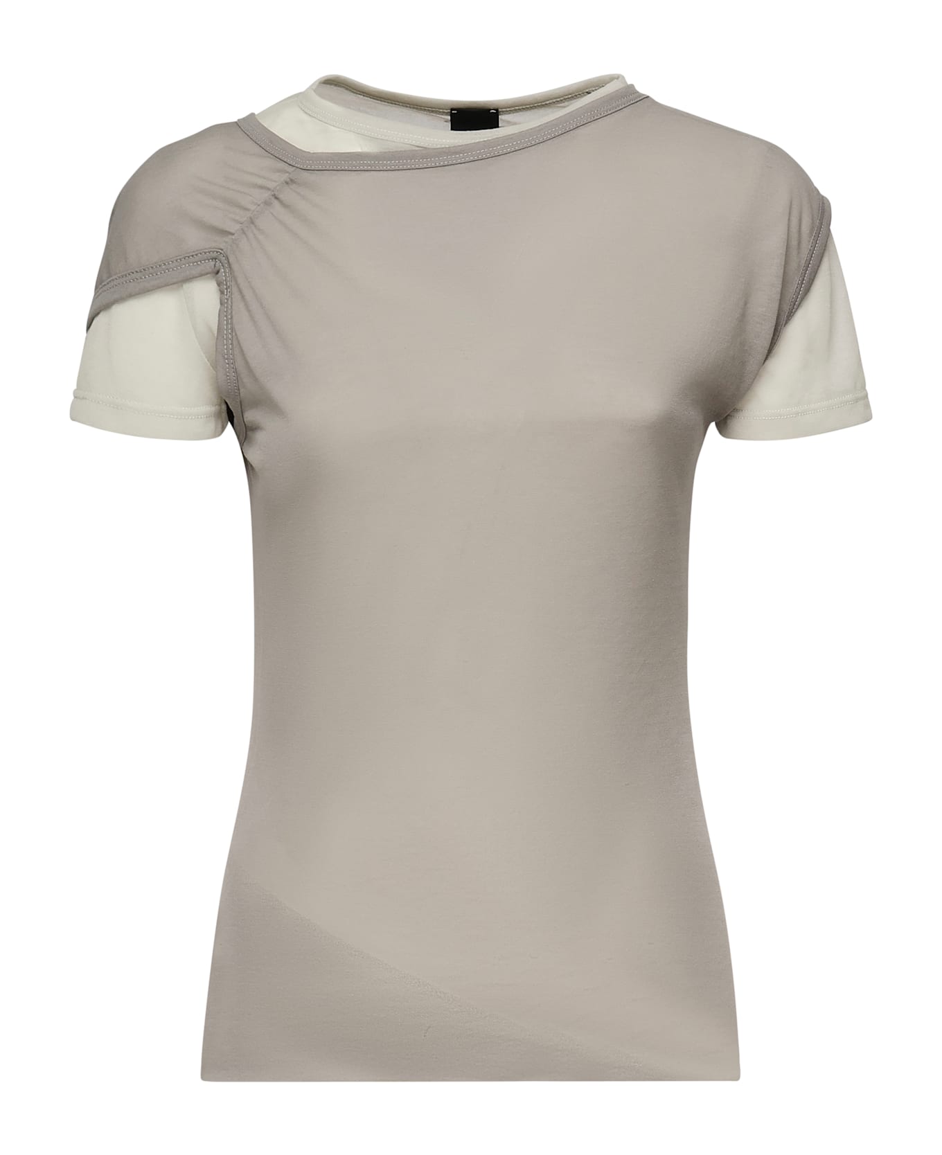 -Lightweight jersey T-shirt with transparent gauze effect -Slim fit -Armholes -Crew neck -Standard length -The size shown in the photo is XS -Made in Italy -Color: Dark gray
