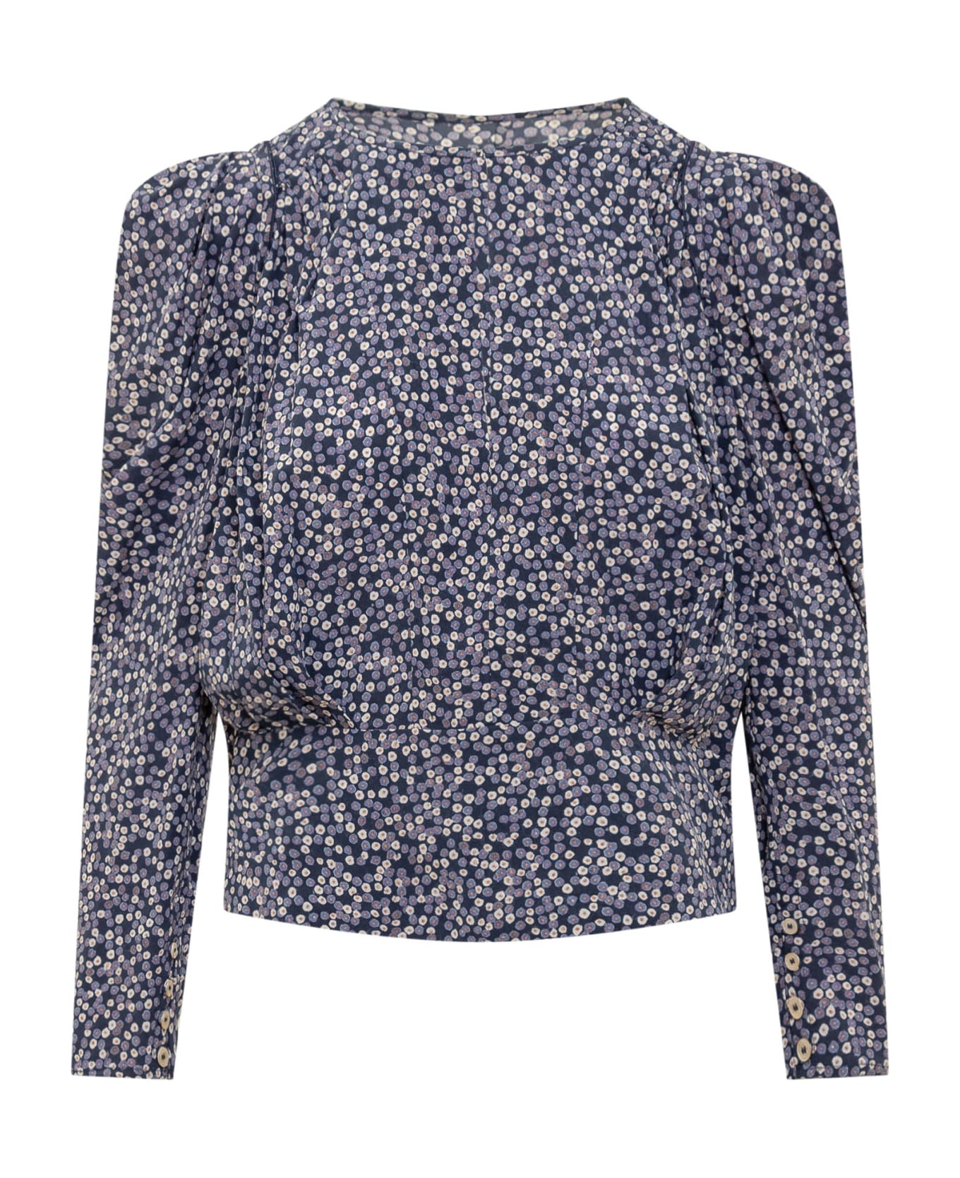 Long-sleeved top. Floral pattern. Side zip closure. Composition: 91% Silk, 9% Elastane