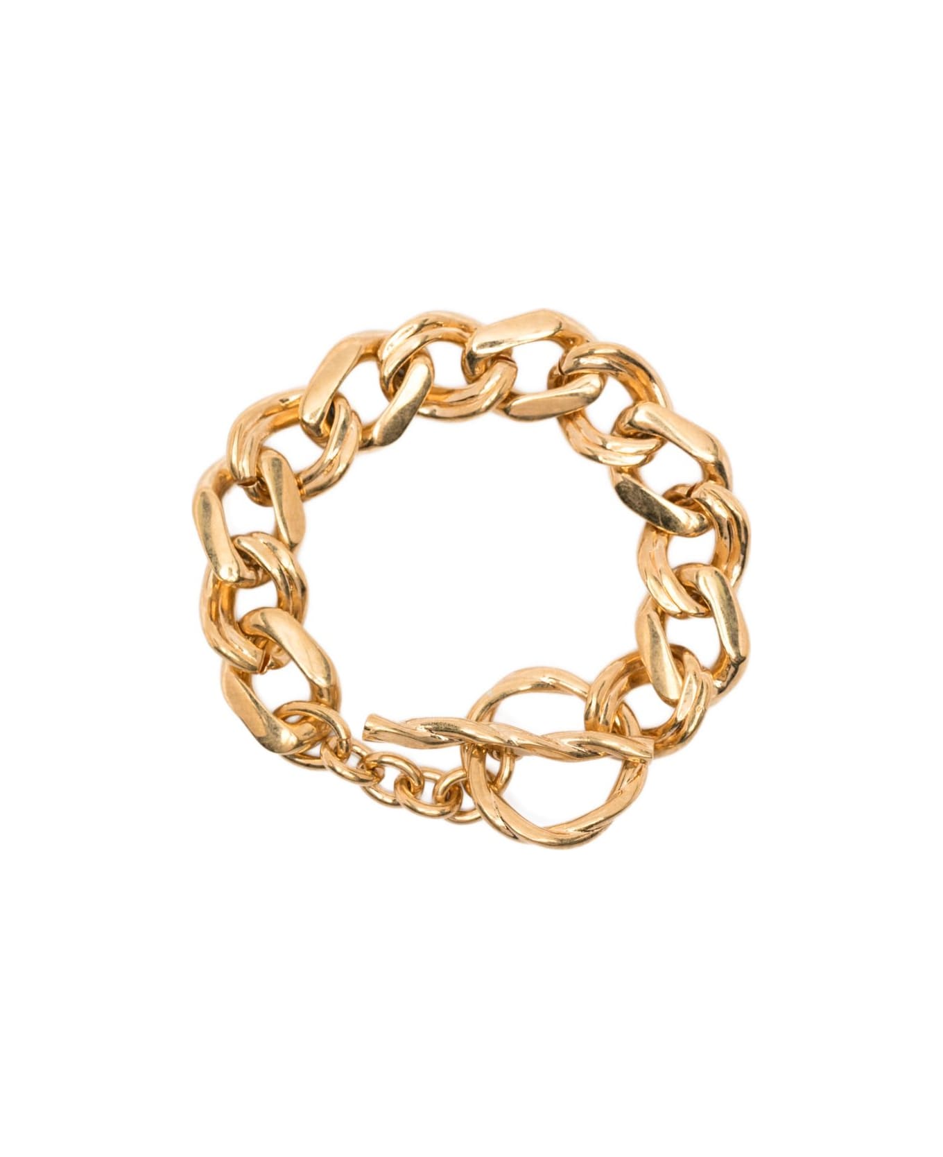 gold-tone chain link t-bar fastening Normal everyday use and external agents may reduce the lustre of gemstones and gold surfaces. To maintain, use specific, non-abrasive products specially meant for cleaning jewellery. Composition: Brass, 100%